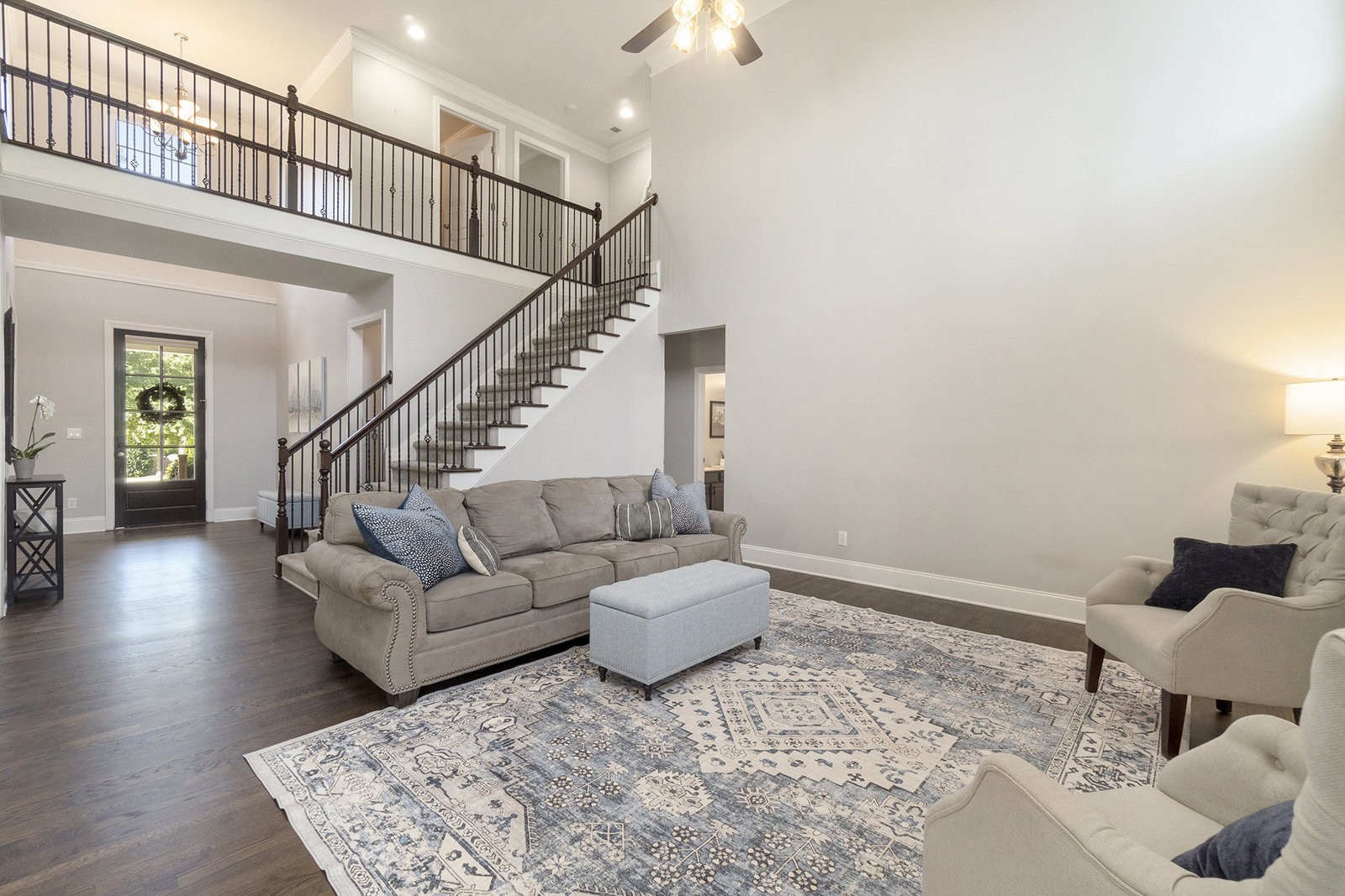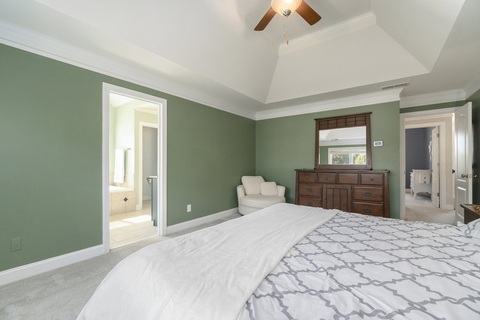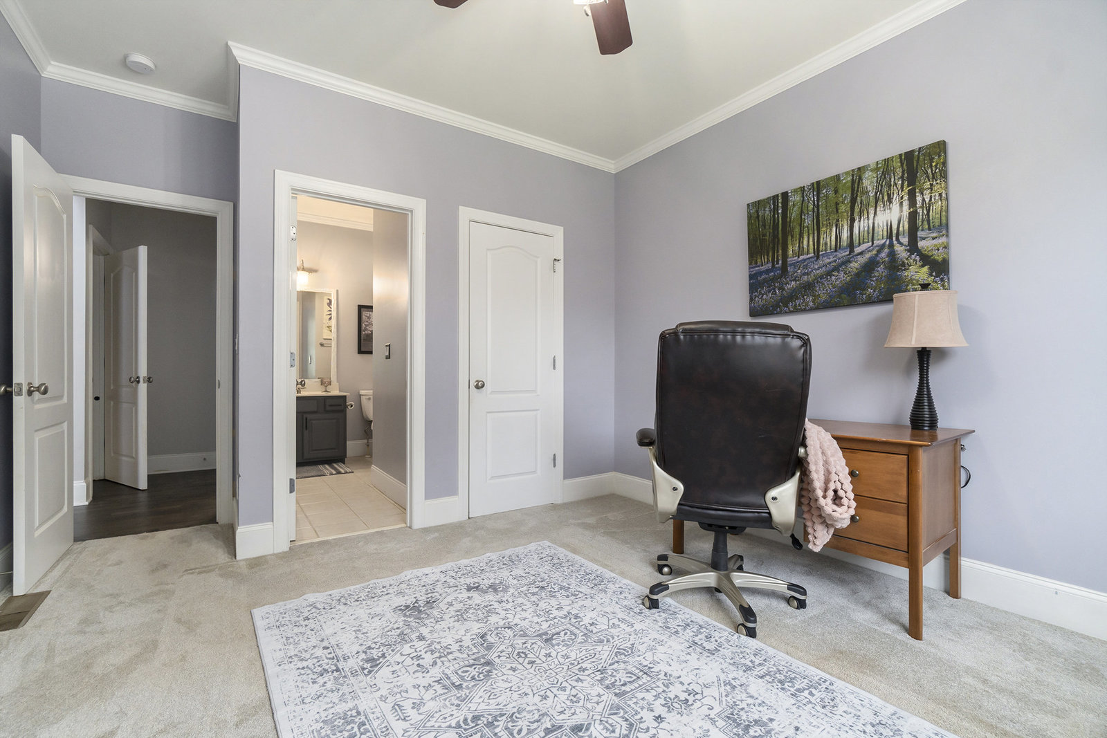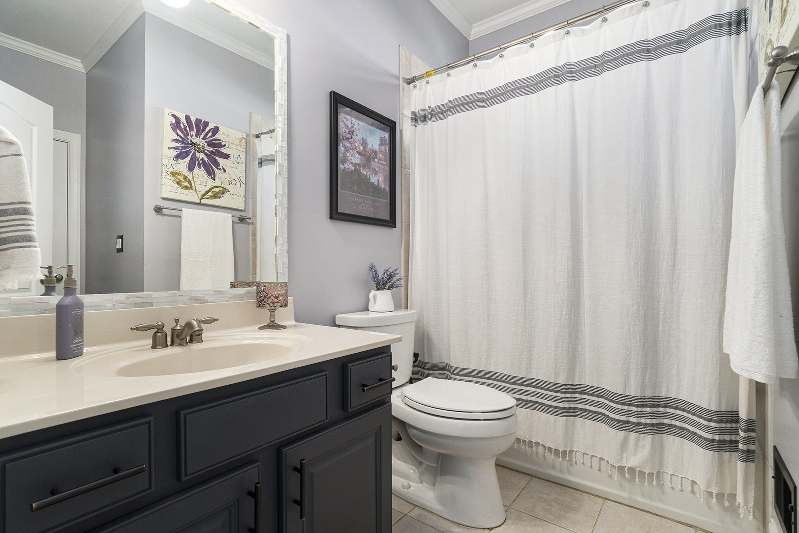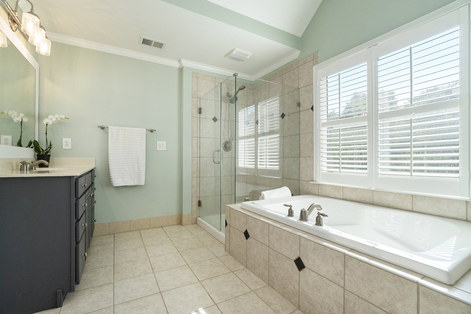 Upstairs retreat to the spacious primary suite with spa-like bath including a spa tub, dual vanities, separate shower, and walk-in closet. Secondary bedrooms are generously sized, one with an en suite, a Jack-and-Jill bath, and a conveniently located large laundry room with utility sink.