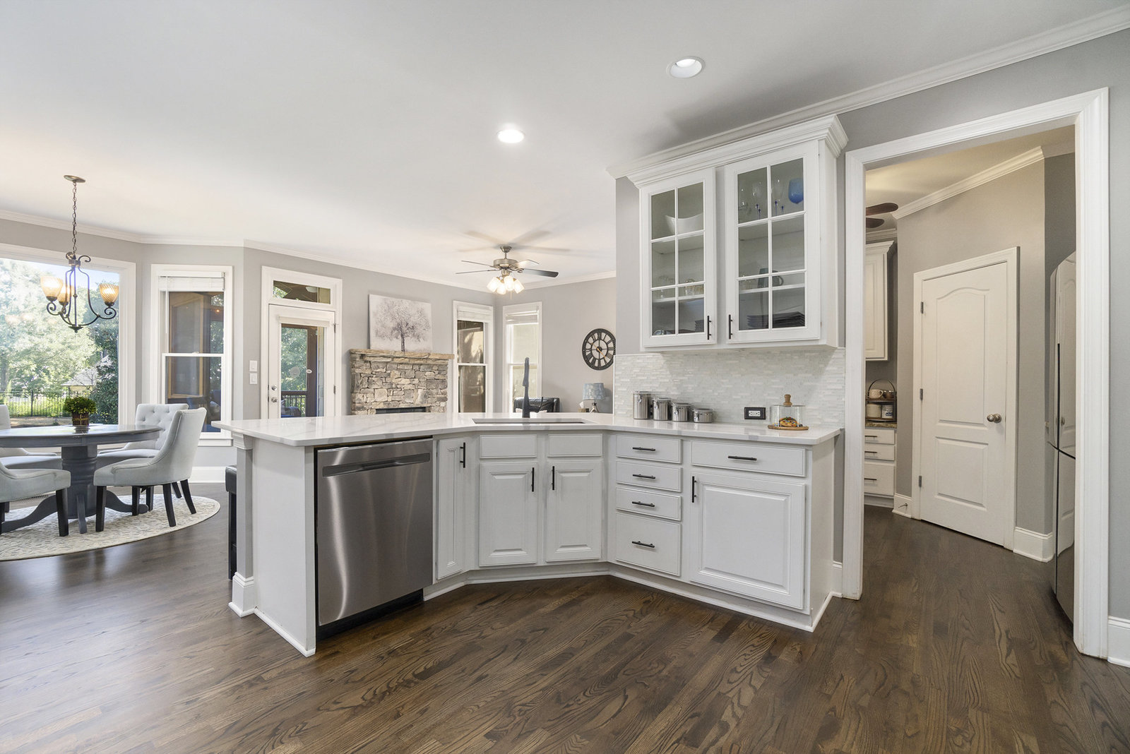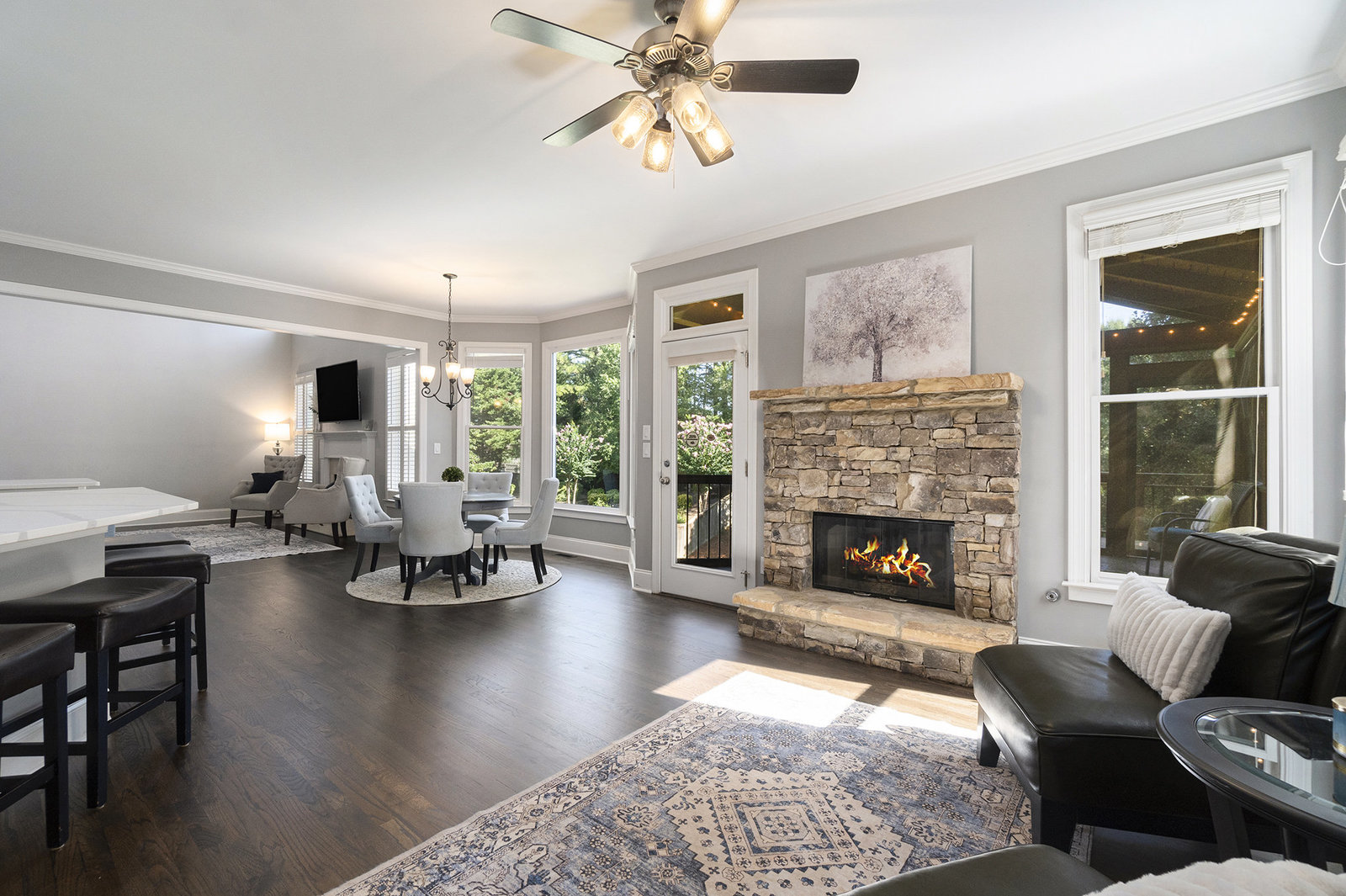 Welcome to 1715 Brown Circle - a lovingly cared for Craftsman in the award-winning Sprayberry High School district! Located in one of East Cobb’s most desirable locations, this elegant 3-sided brick move-in ready home is waiting for you! The main level welcomes you into the open floor plan with the rich and newly refinished tiger oak hardwood floors and soaring two-story great room dripping in natural light. The recently updated white kitchen was designed with you in mind, as walls were removed to improve function and flow. Stylish finishes in the eat-in kitchen include quartz countertops, a breakfast bar, a custom coffee corner, updated paint, and stainless appliances including new gas stove and range. Enjoy a book or catch up on socials in the cozy stacked stone fireside keeping area. Relax year-round on the amazing screened-in deck off the kitchen, overlooking the fenced and beautifully landscaped backyard with stair access from the main level. A stamped concrete patio and fun slide off the back stairs is ready for outdoor entertaining and family enjoyment! A separate dining room and the main level guest en suite round out the first floor.