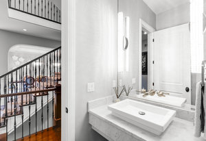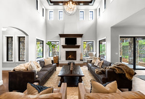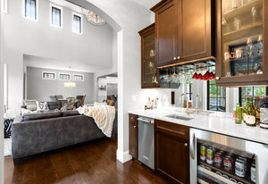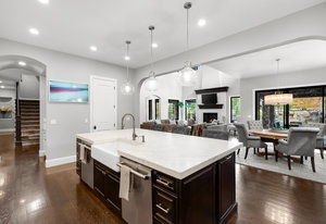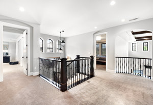 Nestled in the coveted gated neighborhood of Back Country, this custom home redefines luxury living & boasts meticulous craftsmanship throughout. The gourmet chef's kitchen dazzles with top tier Thermador appliances, spacious kitchen island, custom cabinetry,(2)dishwashers, reverse osmosis system & under-cabinet lighting. The open concept main floor features a formal office with custom beams & built-ins, access to a courtyard with a snow melt system, gas fireplace, and water feature. Complimenting the main floor is a formal dining rm & en suite bedroom. Step outside to a backyard that boasts a gorgeous custom saltwater pool w swim jet & hot tub, fire/waterfall bowls, lighting w remote app, in ground trampoline, a fire pit, grill & alfresco dining. Come inside to indulge upstairs in the primary suite w heated tile flooring, engineered solid stone air tub & spa shower w 6 body sprayers, 2 shower heads, hand sprayer & rain head—all w Brizo fixtures & dual skylights for natural light. Accompanying the primary suite are 3 additional en suite bedrooms. Enjoy the finished basement w a projection system, control 4, Sonos, fireplace, custom bar, bedroom currently used as a gym, play room with split door & oversized walk-in storage. The garage is finished with a sealed floor & includes an EV charger with 25’ cable. The home’s mechanical systems have been upgraded, including a new 75-gal water heater w/ on-demand recirculation, new humidifier canister pump/timer, main floor humidifier, fully serviced furnaces w/ new fan motors & new heat exchanger upstairs & expanded panel. Convenience continues w/ a wireless thermostat on the main floor, whole-house sound, EOS WiFi & central network. This residence offers the perfect blend of innovation, elegance, and comfort, setting a new standard for luxury living in Back Country.