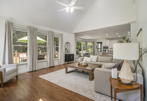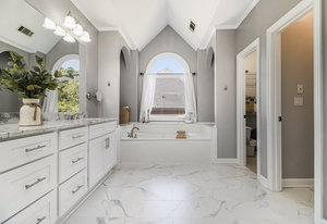 Warm caramel hardwoods welcome you into this lovingly cared for home. Wind your way through from the grand entry foyer, to the smart office/study, into the dining room, out to the open, stylish white kitchen and breakfast area, into the 2-story fireside great room, dripping in natural light. Recent upgrades include a renovated powder room, new front & garage doors, updated lighting (foyer chandelier, dining, breakfast & powder rooms), and fresh paint throughout. The upper level features new carpet, updated bathrooms, and spacious primary suite with remodeled bath, a perfect place to retreat to after a long day.
