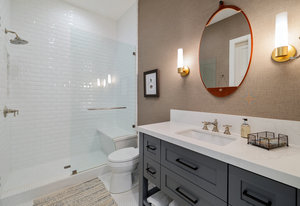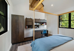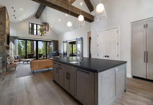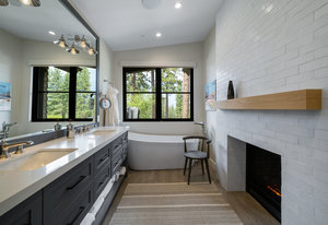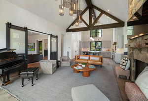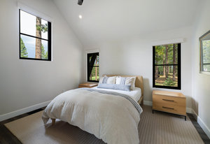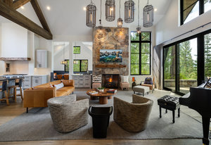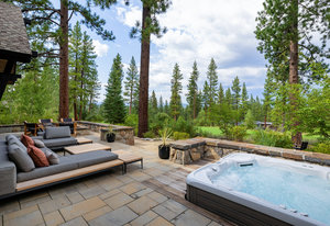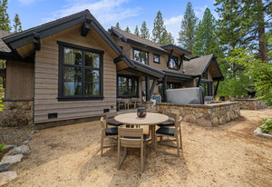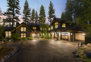 Inside the private gates of Lahontan Golf Club, this mountain-modern home sits on a rare 1 and 1/2 - lot elevated site overlooking the Par Three Course's fifth hole -- maximum privacy today with room to add an ADU for tomorrow. Designed by Sandbox Studio and built by Mark Tanner Construction, it pairs crisp whites and soft grays with reclaimed wood and custom barn doors. A marble-topped kitchen with gray cabinetry anchors the great room, dining area, and media room; wide openings lead to an expanded back patio with spa. Extensive new landscaping wraps the terrace to create a true outdoor living zone with year-round views to both Northstar and Martis Valley. Thoughtful tech upgrades keep ...