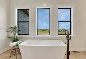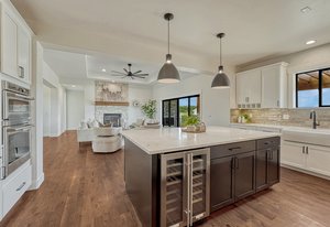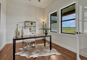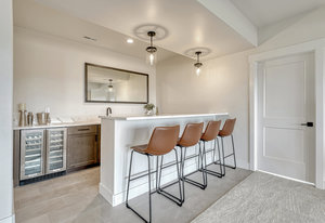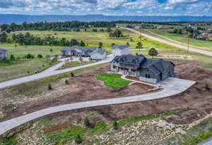 Brand-new custom home in Rollin’ Ridges offering over 5,100 square feet, 5 bedrooms, 5 bathrooms, and exceptional design. Completed in September 2025, this residence blends modern efficiency with timeless craftsmanship, set on a 2.5-acre cul-de-sac lot in coveted Lewis-Palmer District 38. The exterior combines charcoal shiplap siding, stone, and exposed wood beams, leading to a welcoming 38-foot covered front porch. Inside, 10-foot ceilings, mixed-plank white hickory floors, and a stone-surround fireplace create perfect ambience. The gourmet kitchen is anchored by a GE Café six-burner gas range, a 28.7 cu. ft. French Door Smart Refrigerator, wine cooler, and a 7.5-foot island. Eldridge cabinetry with quartz counters and a walk-in butler’s pantry with prep sink. The primary retreat is a sanctuary with a 14-foot custom closet, spa bath featuring a standalone tub, floating maple cabinets with reverse lighting, and a dual-head shower. Black-framed sliders connect directly to the covered rear deck with fireplace—a seamless indoor/outdoor escape. Two additional bedrooms, a shared bath, and a glass-doored office complete the main level. The lower level is designed for versatility: a family room with fireplace, wet bar with refrigerator and dishwasher, two more bedrooms with a full bath, plus a flex study or fitness/creative studio. Over 400 square feet of unfinished day-lit space offers future expansion, while the oversized three-car garage (890 sq ft) includes extended bays and 50-amp EV prewire. Thoughtful upgrades include Class IV Tamko shingles, Energy Star appliances, direct-vent water heater, app-driven garage doors, and central air. Enjoy the rare balance of country living close-in: just 10 minutes to I-25, 15 minutes to Monument, 5 minutes to Flying Horse Club, and 30 minutes to downtown Colorado Springs. Ideal for those seeking relaxed elegance, work-from-home convenience, and the privacy of acreage within access to everything. Possible Seller Incentives.