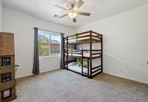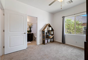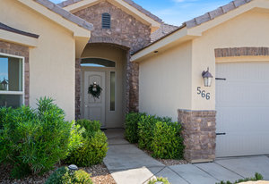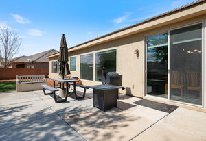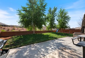 Brand new quartz kitchen countertops and back splash for this single story 2,224 sq feet gem! New fresh interior paint plus the primary bathroom has extra cabinetry and pullout drawers for organization and ease of function. There is no one behind you but a desert hillside which affords you privacy and beauty. The 3-car garage includes a 'bump out' for extra storage and a fully enclosed backyard and low HOA makes this home one you don't want to miss!