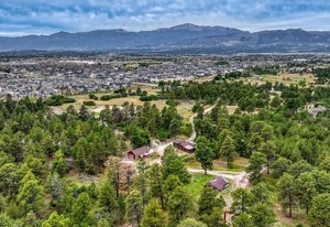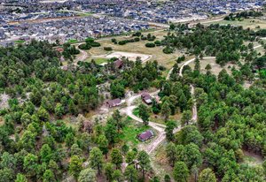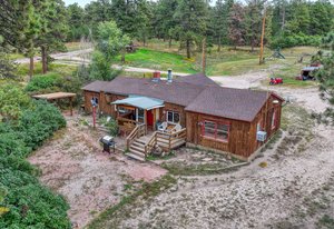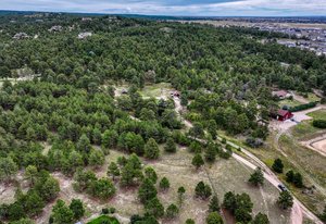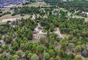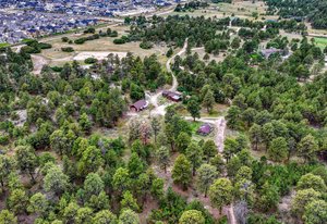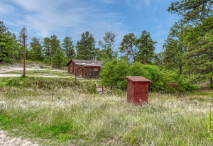 Phenomenal SW Black Forest location with almost 9 acres, gorgeous Pikes Peak views and mature Ponderosa Pines and Scrub Oak only mere minutes from the amenities of Powers and Northgate. This is the best of both worlds - living on peaceful, beautiful acreage but located on the edge of Black Forest with all of the best amenities within minutes of your home. Flag lot with amazing off-road privacy and beautiful homes surrounding. Award winning School District 20 within walking distance of Pine Creek High School. No covenants or HOA. Ability to build additional home with many terrific home sites with walk-out basement potential, barns and outbuildings. Charming cabin built in 1934 and owned by the same family since it was built with over 1,200 square feet on one level, 2 bedrooms, bath and a large living room with log beamed ceilings. Detached workshop/2 car garage. Close proximity to over 2,000 acres of county open space with miles of horse friendly trails, playgrounds, tennis courts within ten minutes. This is a truly special opportunity to own an amazing treed property with stunning mountain views and one of the most desirable locations. See this property quickly!