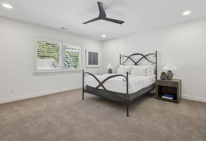Upstairs, the private primary suite features a fitted closet and a serene five-piece bath with soaking tub and Euro-glass shower. An additional ensuite guest bedroom offers comfort and privacy.