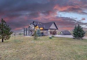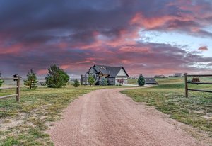 Custom built home with almost 4,000 square feet, spectacular mountain views and a 34x36 barn located in sought after Black Forest and situated on a sprawling 5 acre parcel on a quiet cul-de-sac providing you the perfect blend of privacy and convenience to amenities. Tremendous views of Pikes Peak, the front range and the rolling hillsides of Black Forest perfectly viewed from the multiple outdoor composite decks with metal railings. The home is well cared for and remodeled w/ new 5 ton AC, new furnace, new exterior paint, new composite deck, new 2,500 gallon septic system. 6 bedrooms, 4 bathrooms most bathrooms have heated floors and a 3 car garage. The great room is bright with large windows that perfectly frame Pikes Peak and provide an abundance of natural light. The great room has vaulted ceilings, a gas fireplace w/ stacked stone surround, walk-out to a deck. Open kitchen with granite counters, pendant lighting, a downdraft gas cook-top, shaker cabinets, breakfast bar, pantry, and newer oven and convection microwave. Two ensuite bedrooms. The expansive master bedroom has a private walk-out, a walk-in closet and a 5 piece bath w/ a spacious shower w/ dual showerheads. The lower level family room is styled as a theater room with sound dampening ceiling, black out reclaimed wood shutters with metal accents. Amazing home gym room with tons of space and could be used for multiple purposes including a bedroom. The 34x36 barn has water, electric, 3 Priefert stalls, a hay storage area and tack room. Zoned for horses, allowing you to indulge in your equestrian passions. Class 4 impact resistant 50 year high end roof. The garage is a show piece - it is oversized finished, insulated, painted and has upgraded electrical. Award winning School District 38. Only 45 mins to Denver or 15 mins to Colorado Springs. Fantastic access to I-25 and Highway 83. Commercial marketing video and Matterport virtual tour available.