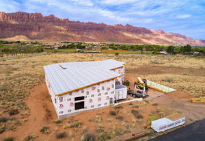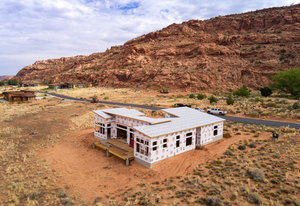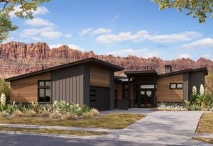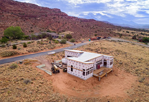 Custom home under construction in Moab's premier neighborhood, Vista Antigua. This gated subdivision is beautifully designed, tucked into a quiet corner, and backing up to open space-truly a hidden gem. The modern home blends clean lines with a desert vibe and offers an open concept kitchen and living area with a wet bar and walk-in pantry. At 1,992 sq ft, the floor plan features 3 bedrooms and 2.5 bathrooms, including two en suite bedrooms with walk-in closets. Enjoy two fireplaces-one in the living room and one in the primary suite-for cozy evenings. The courtyard is designed for entertaining with a built-in gas fire pit and BBQ. A mudroom/laundry room connects directly to the two-car garage ...