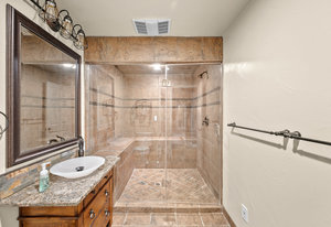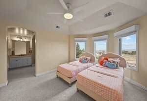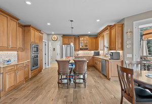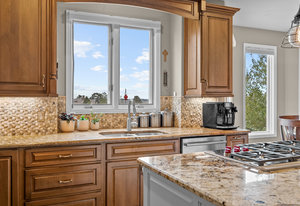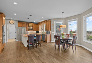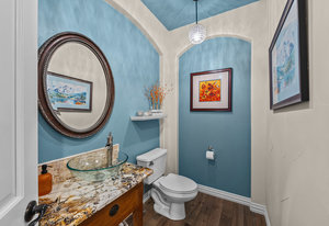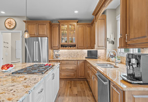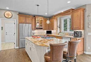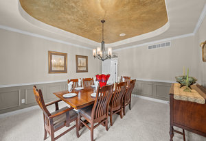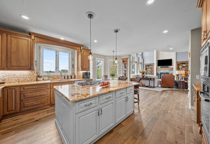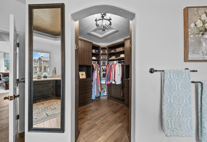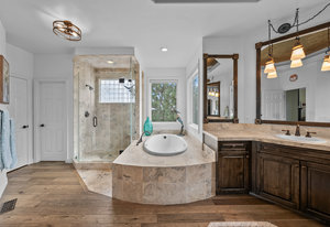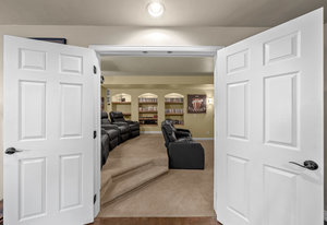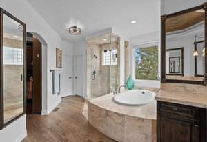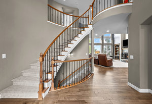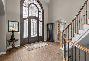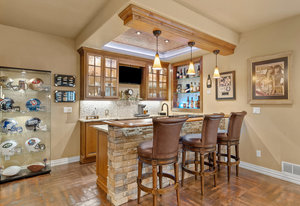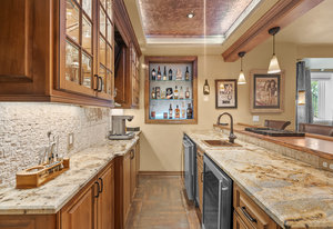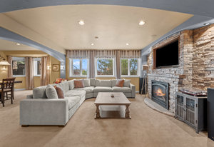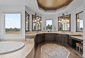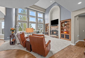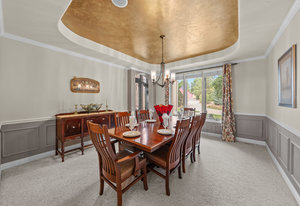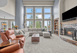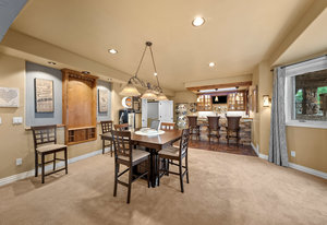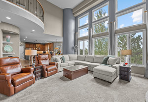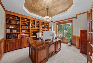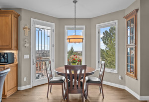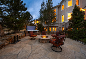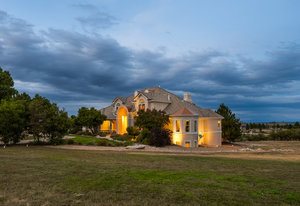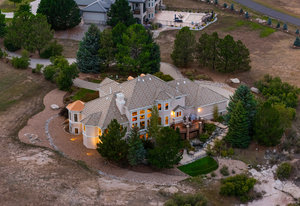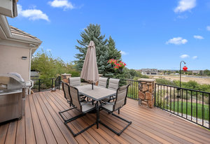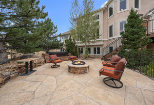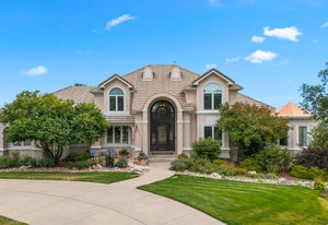 Pulling up the tree-lined circular drive, this Diamond Ridge estate immediately conveys timeless elegance and quiet grandeur. A spectacular wrought iron and glass entry door opens into a soaring foyer with a sweeping curved staircase, setting the stage for refined living. To one side, a richly panelled study with French doors offers the perfect retreat, while the formal dining room with tray ceilings and wainscoting invites gracious entertaining. The gourmet kitchen is a showpiece with a Brazilian “lightning” granite island, and high-end appliances including a new Wolf 5-burner gas range and Bosch refrigerator and a dedicated hot water tank for the sink. A sunlit breakfast nook opens to the deck overlooking the backyard with rock outcroppings. The great room impresses with its two-story ceilings, wall of windows, and dramatic stacked stone fireplace. The main-floor primary suite is a haven with a serene sitting area, spa-like bath, and custom walk-in closet. Upstairs, three spacious bedrooms feature walk-in closets and high ceilings. One enjoys a private en suite, while the other two share an attached bath with separate vanities. The bright, garden-level basement is designed for entertaining with a full copper-topped bar, theater with stadium seating, wine cellar, and rec room. A large guest suite, bath with steam shower and two additional flex spaces provide versatility for any lifestyle. Outdoors, tranquil water features, soothing hot tub and a fire pit are nestled within a flagstone patio creating an idyllic setting beneath the Colorado skies. Two levels offer shade and serenity among the pines - perfect for afternoon lounging, evening gatherings, or quiet retreats. This remarkable home blends sophistication, comfort, and livability in one of Castle Rock’s most prestigious communities.