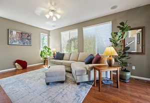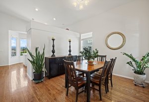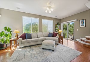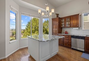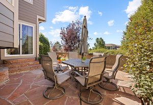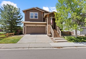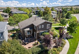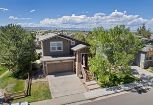Spectacular mountain and city views surround this charming 3-bedroom, 3-bath tri-level home in The Hearth. A vaulted entry opens to the dining room, accented by rich hardwood floors. The spacious kitchen boasts a large center island, generous pantry with pull-out shelving, and stainless steel appliances. The light-filled family room features expansive windows and a cozy fireplace—perfect for winter nights. Upstairs, the primary suite offers a morning bar, tray ceiling, walk-in closet, and a luxurious ensuite bath with oversized soaking tub. Two additional bedrooms, a full bath, and incredible 180-degree views of downtown Denver and the Front Range complete the upper level. Enjoy low-maintenance outdoor living with a beautiful flagstone patio and open space behind—plus a pocket park right next door. Walking distance to neighborhood schools and playgrounds, and minutes from Southridge Rec Center, Daniels Park, and Park Meadows. 10599 Jewelberry Trail combines comfort, convenience, and views—a true gem in The Hearth.
