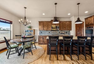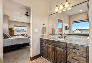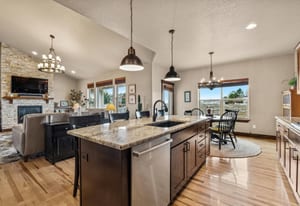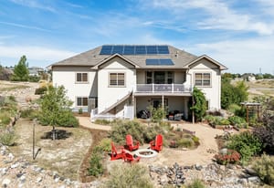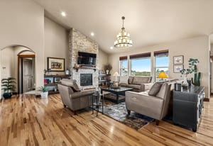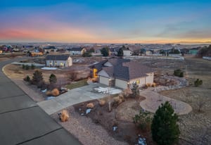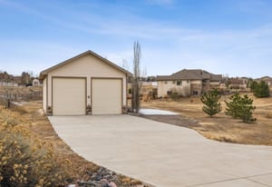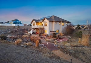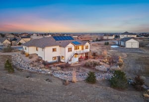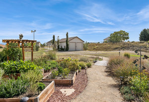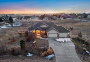 Elegantly refined and meticulously crafted, this exceptional 5-bedroom, 4.5-bath residence in the gated Todd Creek Estates offers nearly 5300 total square feet of sophisticated living across a serene 2-acre lot zoned to allow up to two horses. High-end construction and thoughtful details define every space, from the expansive main-floor primary suite with spa-like bath to the soaring great room anchored by custom cabinetry and premium finishes. The main level delivers effortless one-floor living, featuring a generous primary suite, two additional bedrooms, a private office, formal dining room, expansive great room, gourmet kitchen with breakfast nook, laundry, large mudroom, and direct access to the oversized attached four-car garage. The walkout lower level is ideally suited for multi-generational living or guests, complete with a spacious kitchenette, junior primary suite with oversized bath and shower, second large bedroom, another full bath, and versatile living/media areas, abundant storage, and a dedicated wine room. Numerous upgrades enhance comfort and efficiency: Class 4 impact-resistant roof, dual-zone HVAC, new water heater, and a fully owned solar system that keeps utility bills remarkably low. Outdoors, the spacious main-floor deck invites al fresco dining, while the lower-level patio offers a tranquil retreat overlooking low-maintenance landscaping, tranquil walking paths, and numerous garden beds. A standout feature is the rare detached oversized RV garage (50x30) with 50-amp service and dual drive-through doors—perfect for vehicles, boats, equipment, or equestrian use. Sweeping mountain views and a peaceful, private setting complete this exceptional property. Conveniently located just 25 miles from Denver International Airport (DEN) and 30 miles from downtown Denver, it offers the ideal blend of rural tranquility and urban accessibility. See http://9912east146thavenue.com/ for many more pics!