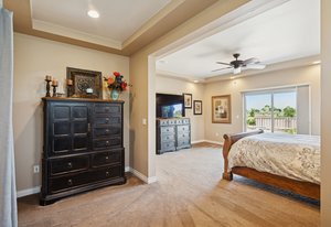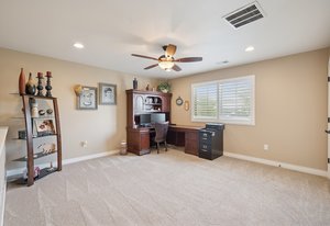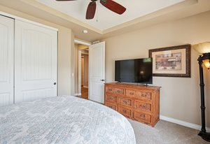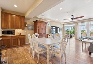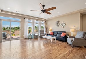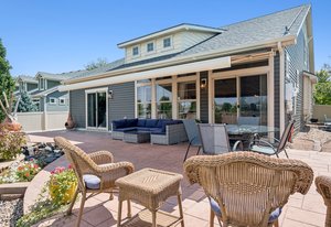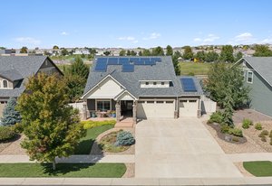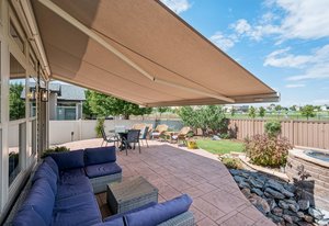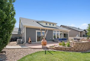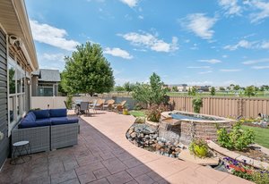 This spectacular home, located in the Exclusive 55+ Fairway Villas, is meticulously maintained with total main-floor living and an additional upper level. An Open Concept floor plan flows nicely from the foyer to the rear patio, conveniently combining the Kitchen, Dining area, and Family room, for everyday living and entertaining. The Kitchen is a cook’s dream with high attention to detail and an Island of substantial size, including storage - perfect for baking or entertaining. The Kitchen includes exceptional stainless steel appliances, beautiful warm wood cabinetry, a lovely double sink, a pantry, and room for everyone. The dining area is centrally located and eases into the spacious family room filled with natural light, views of the rear yard and access to the immense rear patio. The generously sized Primary Bedroom is located just off of the family room and features a reading nook, fantastic Spa-like bath, spacious walk-in closet, and access to the rear patio/yard. A huge shower highlights the Primary Bath! Also on the main floor are a Second bedroom, a full bath, and a Laundry room containing cabinetry and a separate storage area. Additionally, there is an upper level with a roomy loft and a Third bedroom with an ensuite full-sized bath. The spacious 3-car garage has epoxy flooring and storage. Professional landscaping wraps around the entire home, providing amazing curb appeal, an oasis-like rear yard, and low-maintenance beauty. This home features two outdoor living spaces with a covered front patio for relaxing and an expansive rear patio for entertaining. The rear yard has an attractive and calming water feature, turf, a serene side yard, a concrete sidewalk for easy/safe access, a sizable storage shed, and an electric retractable awning offering extra shade, a full privacy fence w/gate. Solar power keeps year-round electricity costs low. Located in a metro district, there is no Hoa, and the community supplies access to the clubhouse, fitness center, pools, golf course, shared garden, extensive walking/biking paths, parks, and more. Close to everything – you’ll find this home the perfect place to live your best life! Schedule a private showing today!