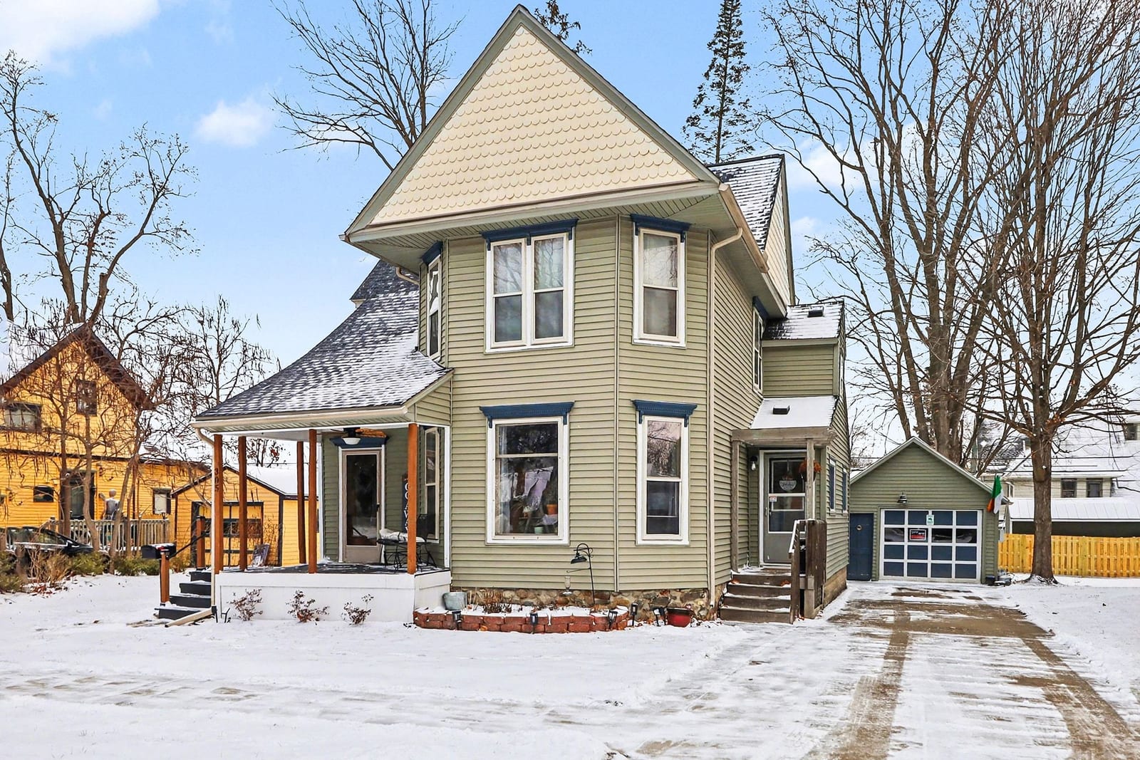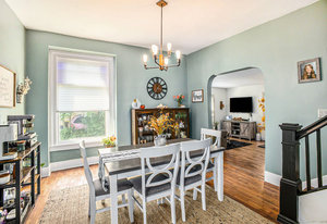 Nestled in the heart of Williamston, this beautifully updated Victorian offers 3 bedrooms and 2 bathrooms, blending timeless character with modern farmhouse flair. A welcoming front porch invites you into a quaint entryway, opening to a stunning living room with soaring ceilings and abundant natural light from the south-facing windows. The main level features a formal dining room and an updated kitchen with newer appliances, perfect for entertaining. A cozy family room, mudroom off the side entry, laundry area, updated bath, and a convenient first-floor bedroom complete the main level.
