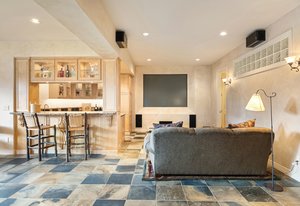 ramp. The lower level offers a theater room, a wet bar kitchenette with wine cooler, ice maker and dishwasher, a fitness