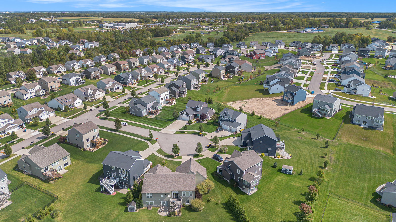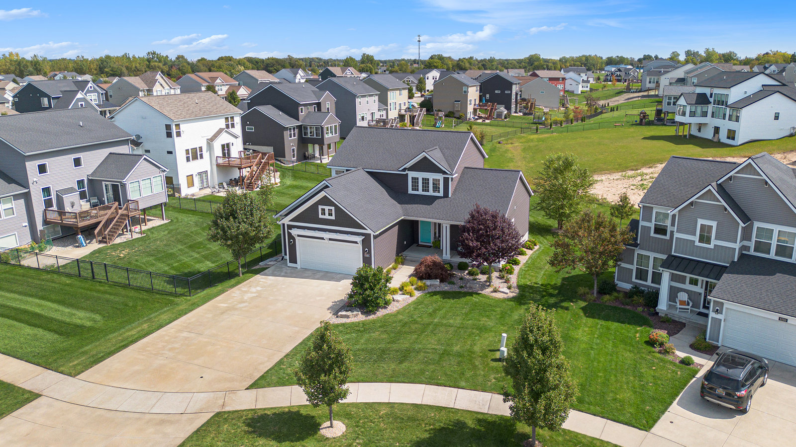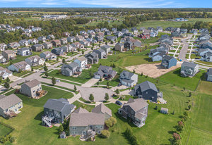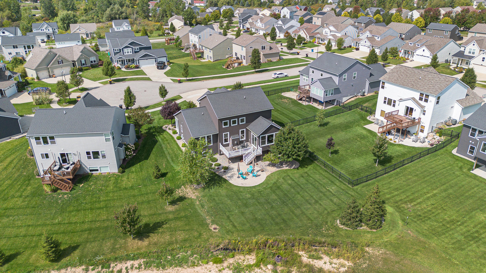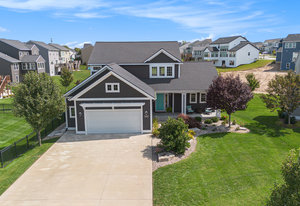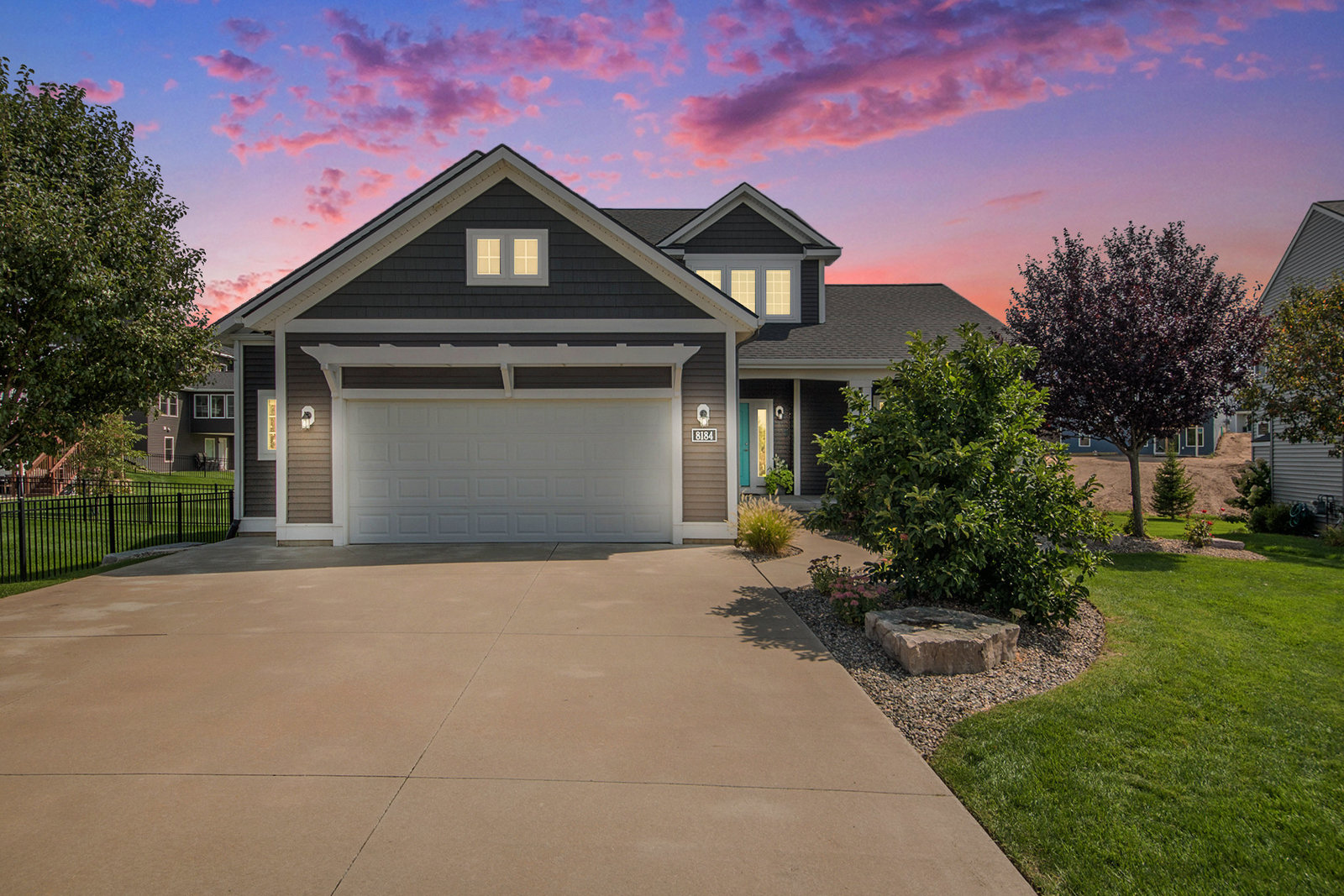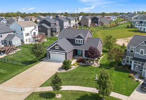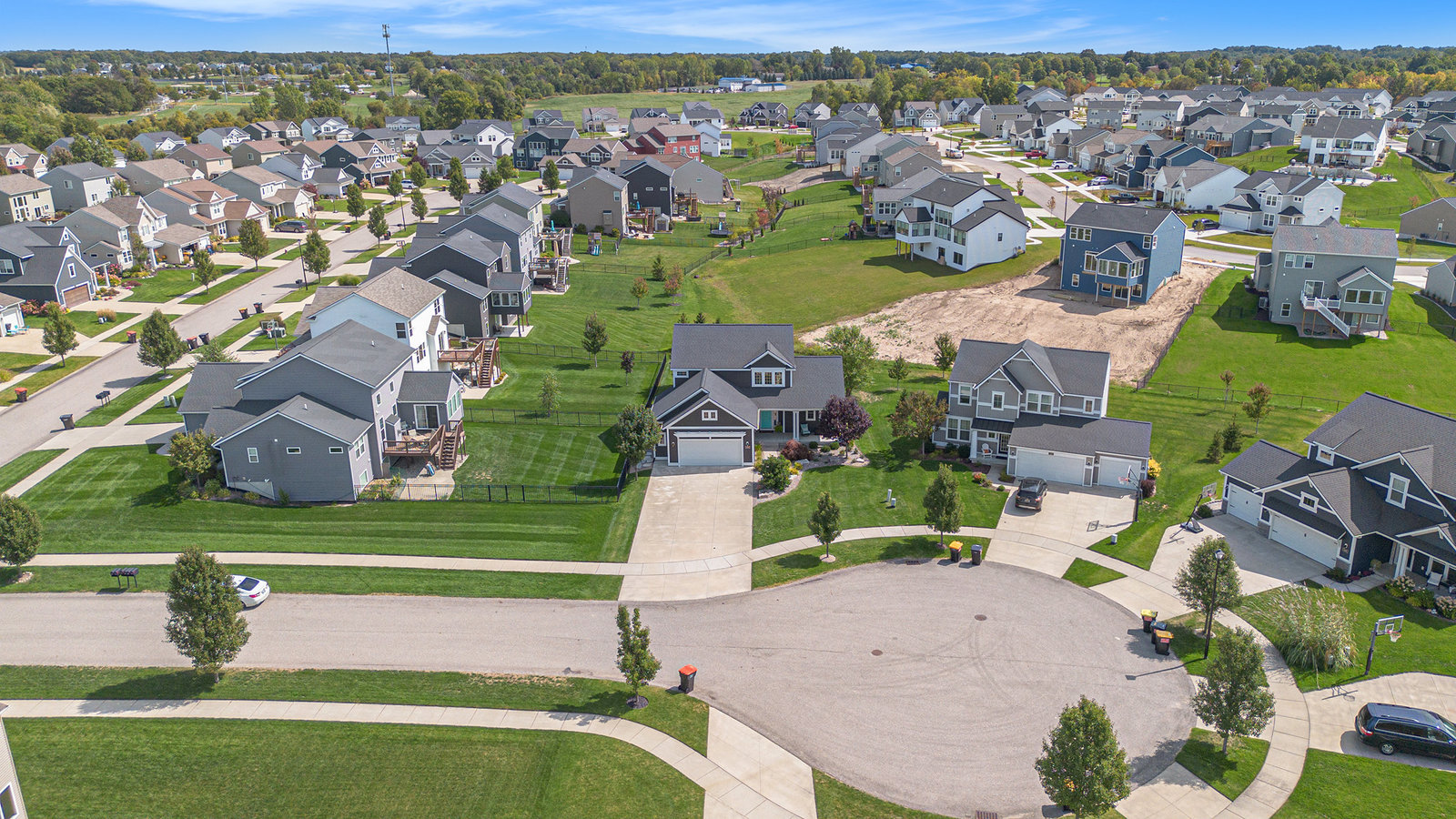 Custom designed and beautifully maintained by the original owners, this standout home sits at the end of a quiet cul-de-sac in the sought-after Cooks Crossing neighborhood. Located within walking distance of Countryside Elementary and part of the award-winning Byron Center School District, the setting also includes parks, walking paths, and a scenic neighborhood pond and fountain. Inside, the main floor showcases 9-foot ceilings and a spacious open layout. The custom kitchen features quartz countertops, a built-in oven and cooktop, a stylish wood hood, a walk-in pantry, and matching built-in microwave. Just off the kitchen, the dining area includes coffee and wine bar built-ins for added style and function. The adjacent sunroom is a showpiece with cathedral ceilings, beams, beadboard finishes, and a slider leading to a composite deck and large cement patio below. The main floor primary suite includes a dual vanity with quartz counters, a tile shower, linen storage, and custom