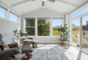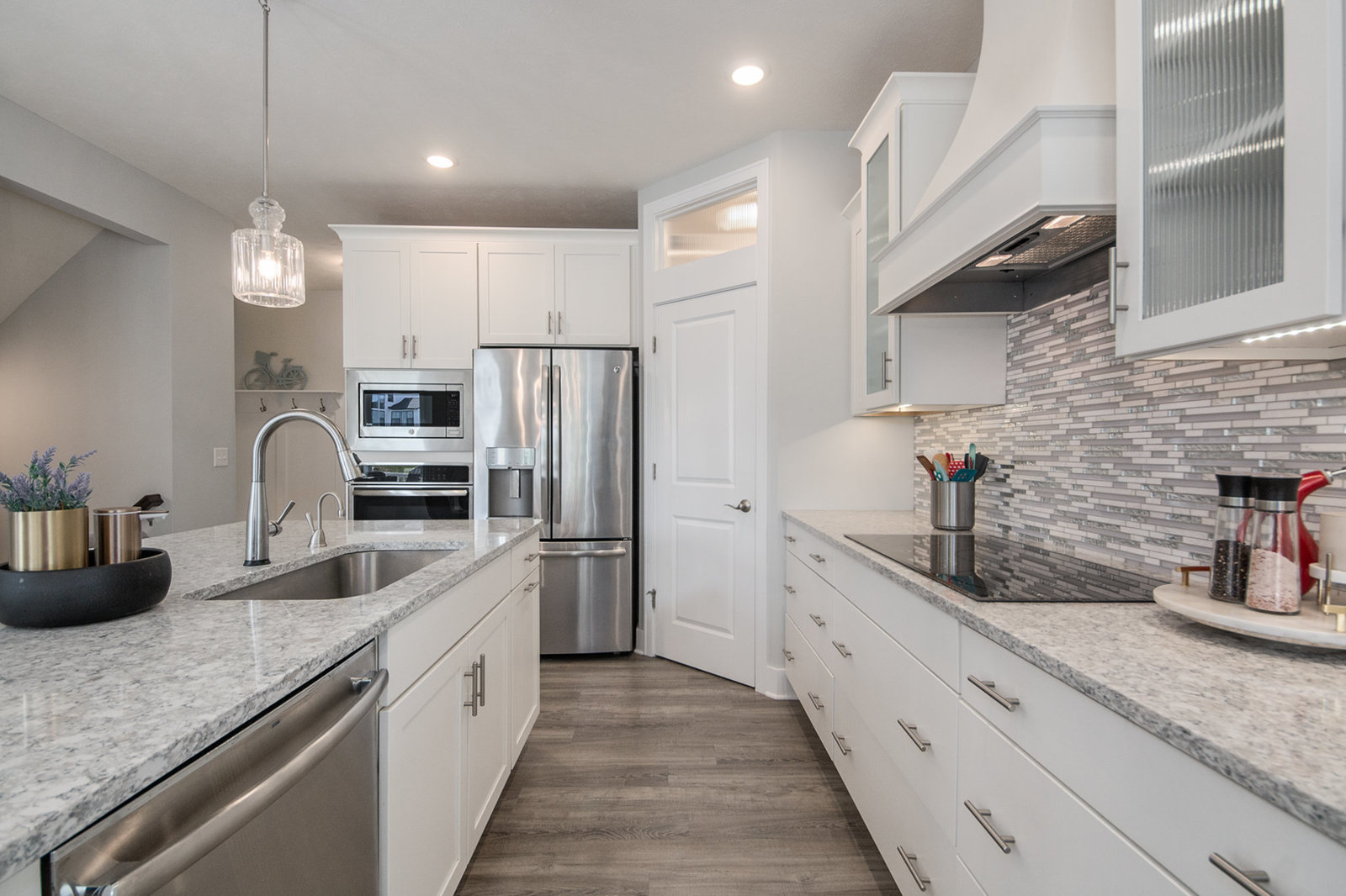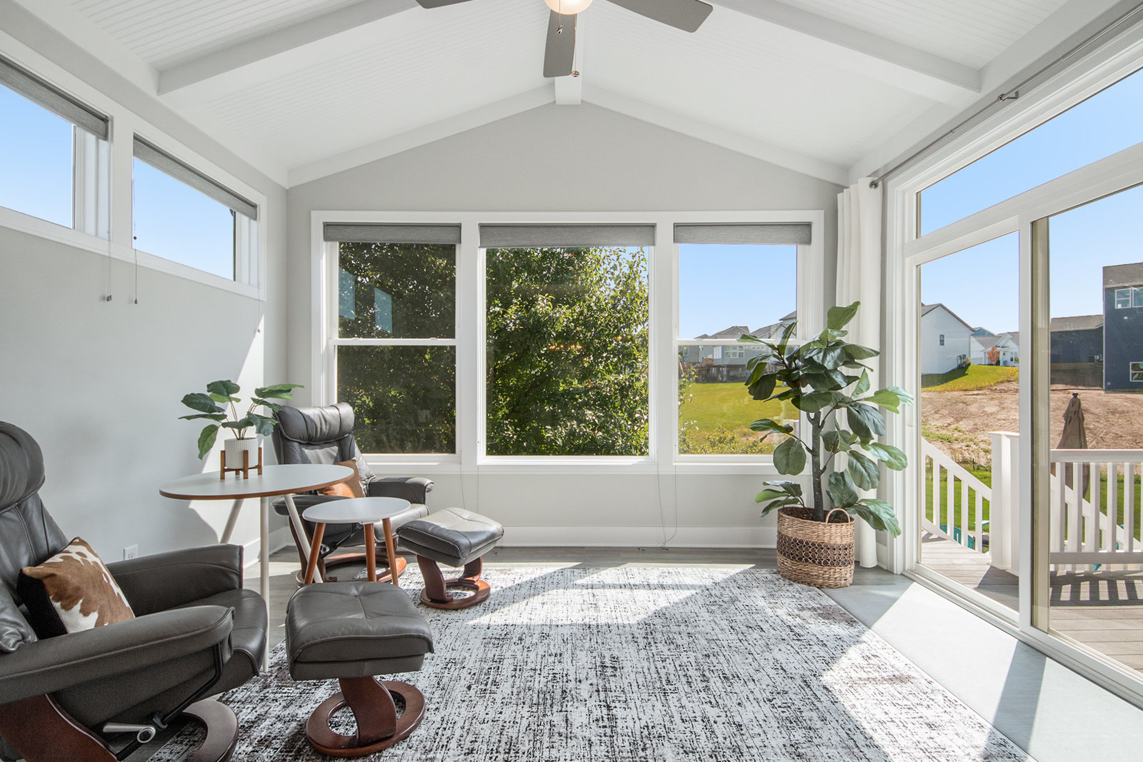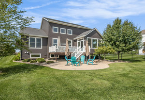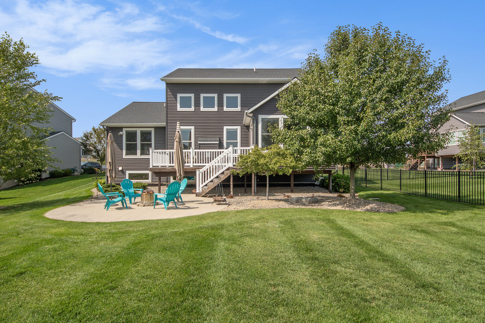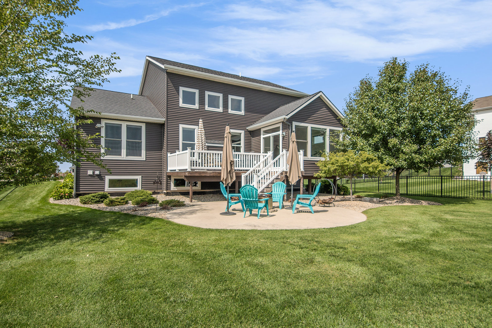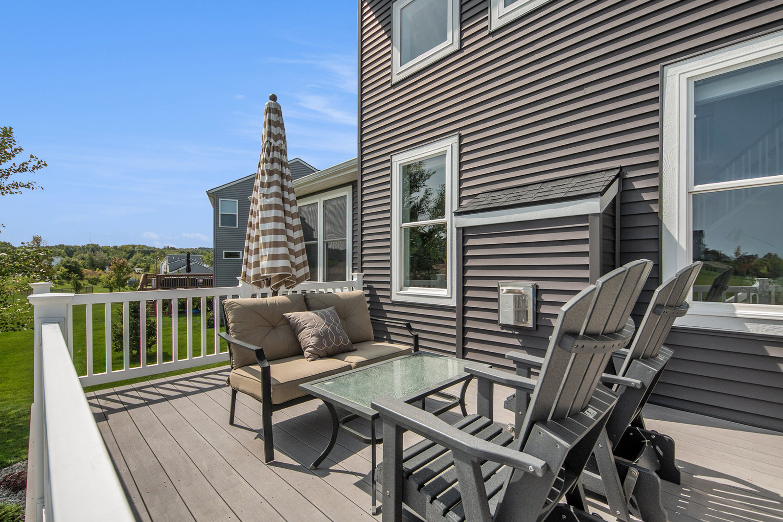 Custom designed and beautifully maintained by the original owners, this standout home sits at the end of a quiet cul-de-sac in the sought-after Cooks Crossing neighborhood. Located within walking distance of Countryside Elementary and part of the award-winning Byron Center School District, the setting also includes parks, walking paths, and a scenic neighborhood pond and fountain. Inside, the main floor showcases 9-foot ceilings and a spacious open layout. The custom kitchen features quartz countertops, a built-in oven and cooktop, a stylish wood hood, a walk-in pantry, and matching built-in microwave. Just off the kitchen, the dining area includes coffee and wine bar built-ins for added style and function. The adjacent sunroom is a showpiece with cathedral ceilings, beams, beadboard finishes, and a slider leading to a composite deck and large cement patio below. The main floor primary suite includes a dual vanity with quartz counters, a tile shower, linen storage, and custom