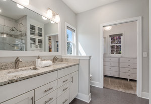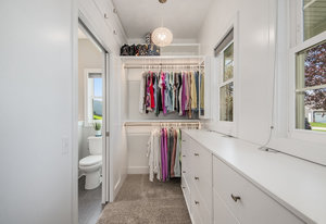 cabinetry and shelving in the walk-in closet. Additional highlights include CAT-6 network wiring, a built-in natural gas generator with automatic transfer, underground sprinkling, and an underground dog fence with collar included.The finished and insulated two-and-a-half stall garage is built two feet deeper than standard and includes an epoxied floor, hot and cold spigots, built-in shelving, upper cabinets, bike racks, a workbench, and its own subpanel ready for an electric vehicle or workshop needs. ...