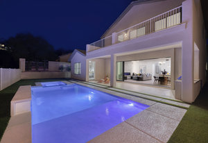 room feature a huge 20ft slider that opens up into the resort style yard with brand new pool, spa and BBQ
