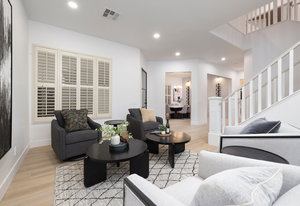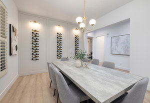 cabinets, pendant lighting and more. The open floor plan is perfect for entertaining, the kitchen and living