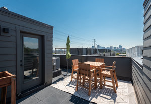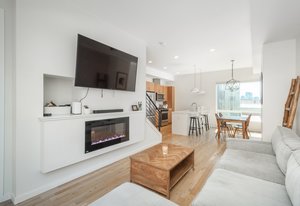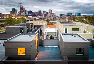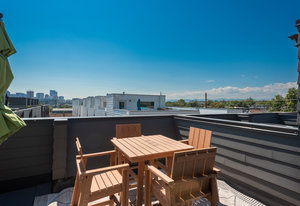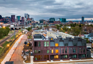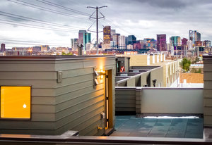 Welcome home to this modernist townhome in the heart of the hottest transit oriented development in Sunnyside known as Railhouse. This unit has the development's premium location with direct unimpeded rooftop views of downtown Denver and the mountains to the west. The 4 story design provides a roomy entrance foyer with closet and access to an attached 2 car garage, a true luxury amenity, with south-facing driveway. On the 2nd floor is an open design with light and bright kitchen that features quartz countertops, stainless steel appliances, soft close cabinetry and bar countertop. Kitchen is open to dining and living rooms, all with hardwood flooring, and oversized windows fill the space with natural light. An electric fireplace adds a cozy feel while tucked-in powder bath is perfect for guests. The 3rd floor accommodates 2 primary bedroom suites, each with their own quartz and tiled baths plus spacious closets. Stackable laundry is located on this for level for added convenience. The upper floor has an atrium door opening to the roomy rooftop deck displaying dramatic views for top drawer entertaining with ever-changing city scape and mountain vistas. Enjoy your morning coffee, end of the day glass of wine and watch the 4th of July fireworks from this special space. All of this is just 1 block to the bridge connecting Sunnyside to the 41st and Fox Street light rail station (D.I.A. here I come!) and next to the Platte River and Cherry Creek paths providing miles of pleasure for runners and cyclists alike. This home is walking distance to yoga studios and restaurants including Waldschanke Ciders & Coffee, Huckleberry Roasters Coffee, Pochitos@The Railyard, Kike's Red Tacos, The Original Chubby's, Pepper Asian Bistro II, Diebolt Brewing Company, Acova, and Steam Coffee. Access to LoHi plus the Ciancio Park and tennis courts makes this the ideal urban location! The community shares the cost of snow removal & exterior maintenance to keep life simple.