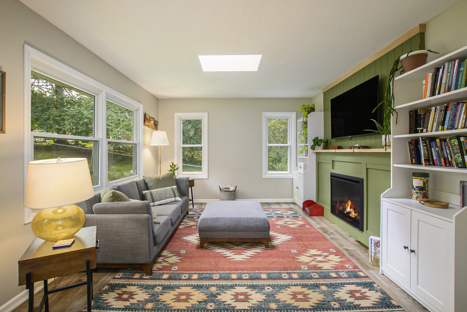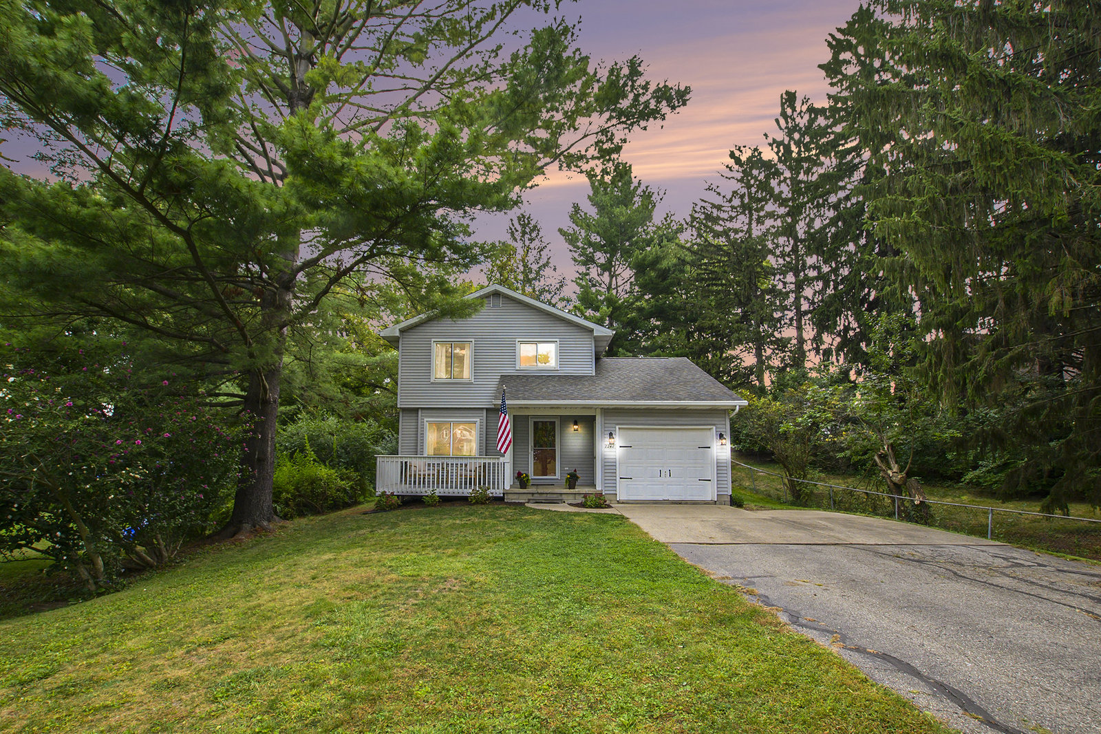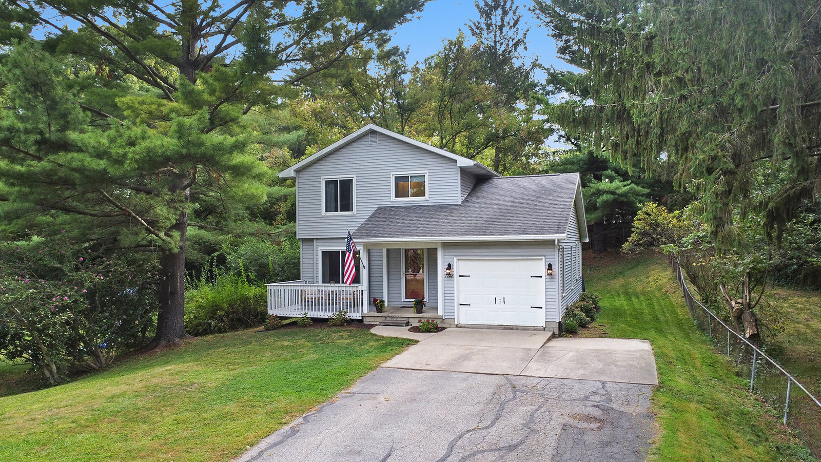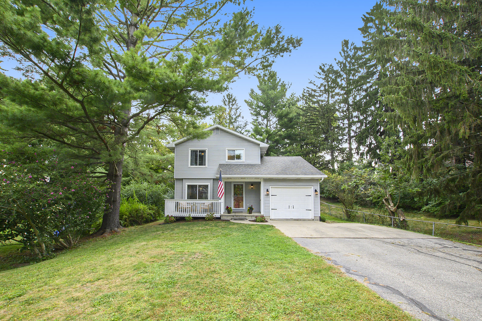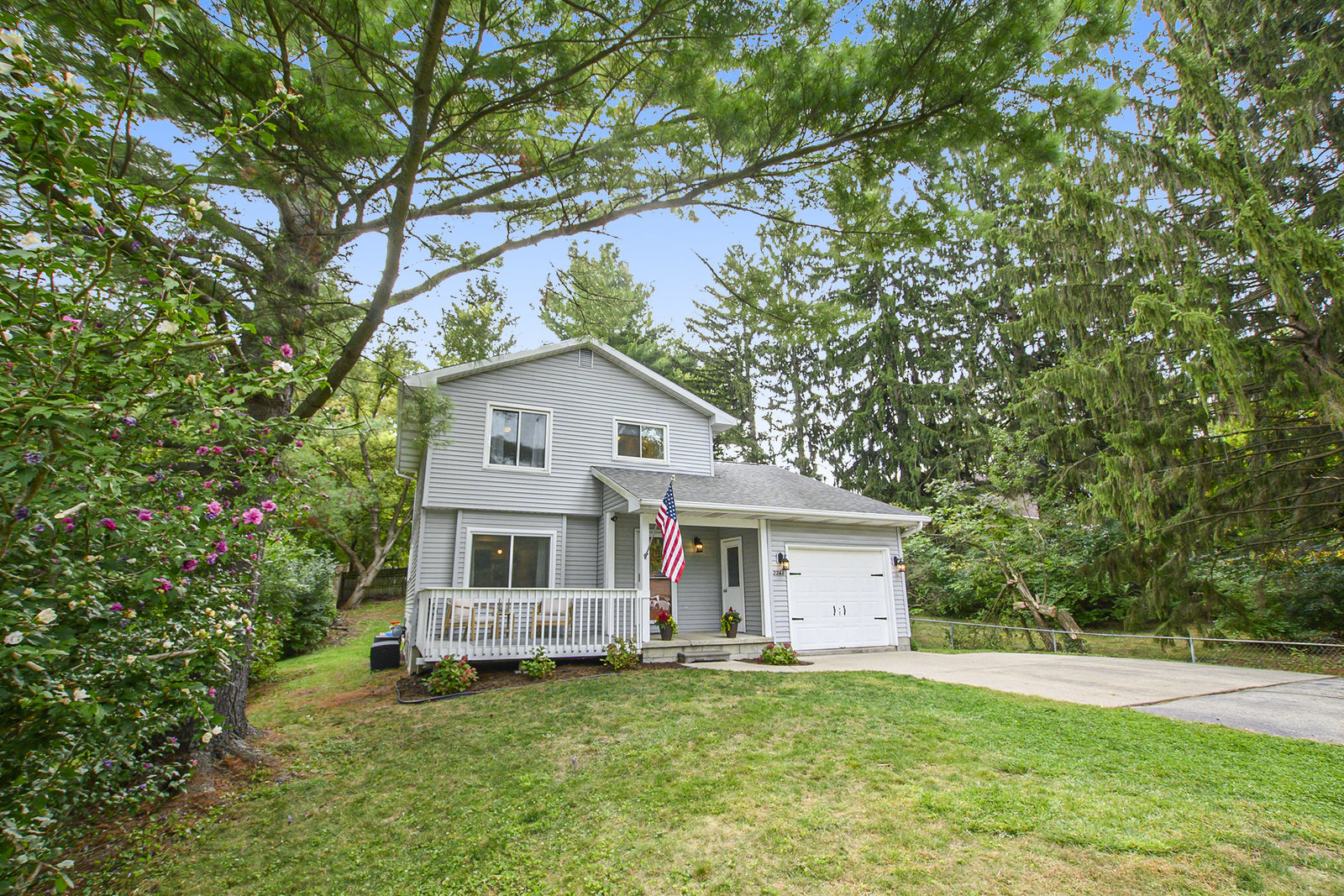 This 1,282 sq ft home offers comfort, character, and convenience—all within the sought-after Okemos Public School District. Step inside from the welcoming front porch into a bright and functional foyer, complete with a coat rack and shoe bench—perfect for Michigan seasons. The open-concept kitchen features a convenient breakfast bar and flows seamlessly into the dining area, ideal for both everyday living and entertaining. The cozy living room is filled with natural light from overhead skylights and features new built-ins, an electric fireplace, and a sliding door that leads to your private backyard. A stylish half bath completes the main floor. Upstairs, you'll find three comfortable bedrooms and a full bathroom. Outside you'll find a private backyard—perfect for play, entertaining, or relaxing evenings under the stars. Don't miss the opportunity to make this warm and welcoming home yours today!