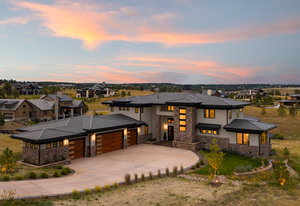 Welcome to this stunning custom residence nestled behind the gates of the prestigious Colorado Golf Club, one of Colorado’s most coveted luxury communities. Set on a quiet street with sweeping views of Pikes Peak and the Front Range, this mountain contemporary masterpiece is a sanctuary of style, comfort, and sophistication. From the moment you arrive, the home’s bold architectural design, four-car garage with custom flooring and EV charging stations, and breathtaking mountain vistas define Colorado living at its finest. Inside, soaring ceilings and floor-to-ceiling glass walls create an airy ambiance and seamless indoor-outdoor flow. The great room centers around a dramatic glass fireplace, opening to a chef’s kitchen adorned with Taj Mahal quartzite countertops, premium appliances, and extensive custom cabinetry. A spacious walk-in pantry offers additional freezer space and abundant shelving for effortless organization. The main level also features a refined home office, a guest suite with an ensuite bath, a designer powder room, elevator access, and a large mudroom and laundry. Upstairs, the primary retreat is a true escape, featuring a private covered balcony with a fireplace, a spa-inspired bath with radiant floors, an expansive walk-in closet, and secondary laundry. A second ensuite bedroom completes this level with equal attention to detail. The walkout lower level is an entertainer’s dream with a full wet bar, family room, game area, gym space, and three additional bedrooms, including one with a Jack-and-Jill bath and another with a private ensuite. Step outside to your private oasis—a full-length deck with multiple fireplaces, an outdoor kitchen, and a covered pavilion with built-in grill and refrigerator—all perfectly framing panoramic mountain views. Experience the ultimate blend of modern luxury and mountain serenity, just minutes from downtown Parker, Castle Rock, and top-rated Douglas County schools.