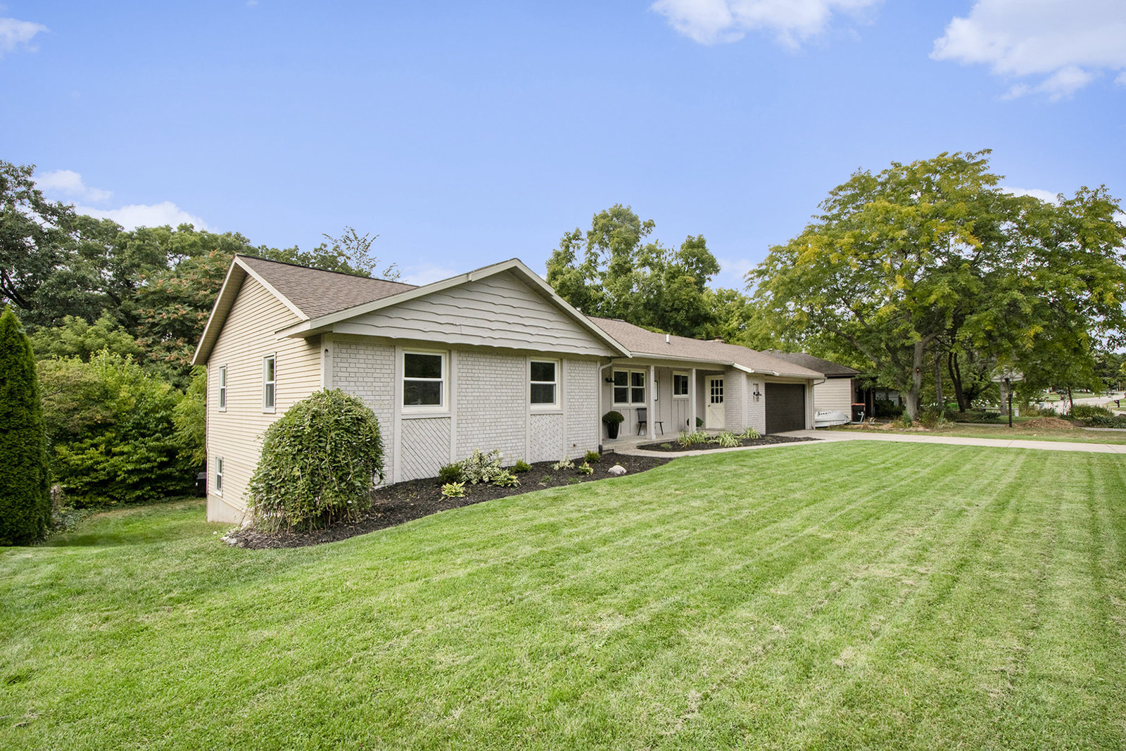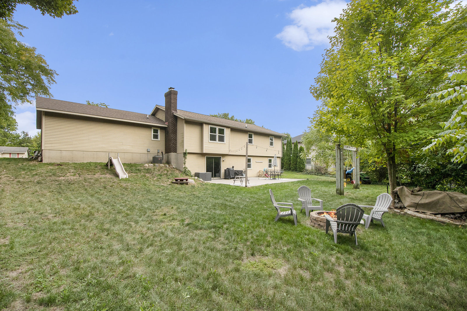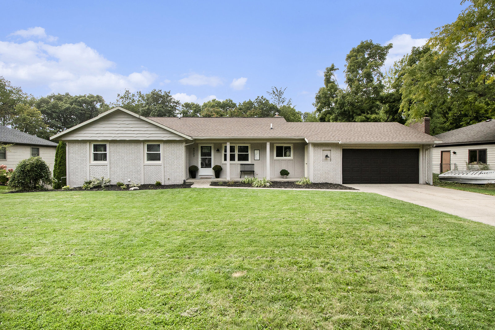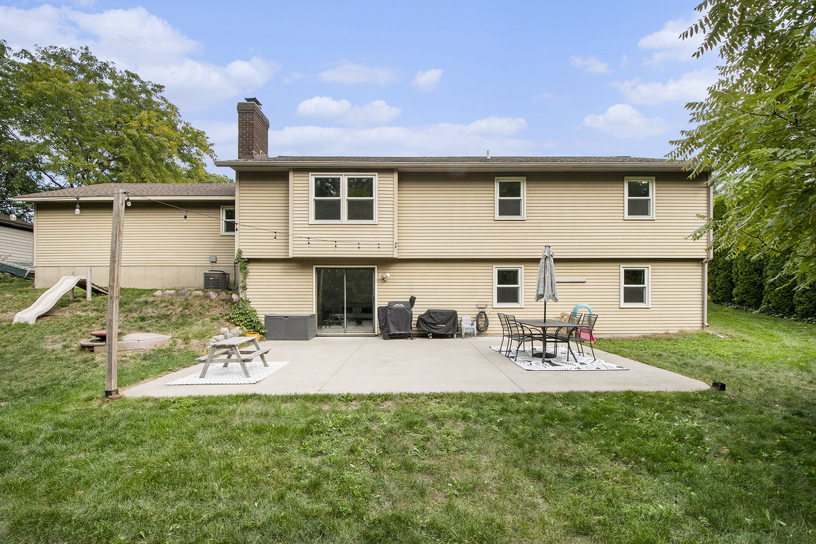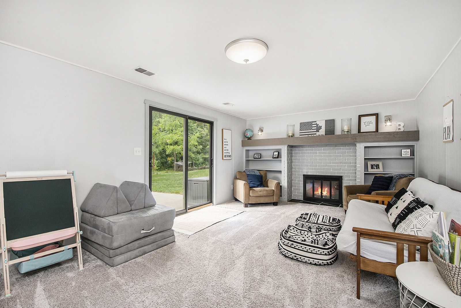 Nicely updated five-bedroom, three-bathroom walkout ranch in the desirable Northview School District. The main floor features brand new carpeting and an open living area with a sleek linear fireplace, built-in cabinets, and floating shelves. The kitchen has been thoughtfully refreshed with painted cabinets, a subway tile backsplash, updated hardware, and stainless steel appliances. Just inside the attached two-stall garage is a convenient drop zone with built-ins for coats and shoes. The walkout lower level adds a spacious family room with a wood-burning fireplace, built-in shelving, and a slider leading to a large cement patio that overlooks the private backyard setting. The yard backs up to woods, offering a peaceful and semi-private feel while still being just minutes from everything that Plainfield and Northland Drive have to offer. Additional highlights include a primary suite with dual closets and a private bath, vinyl replacement windows, and a new furnace and AC installed in 2017. This is a great location with easy access to expressways, Rockford, and Downtown Grand Rapids.