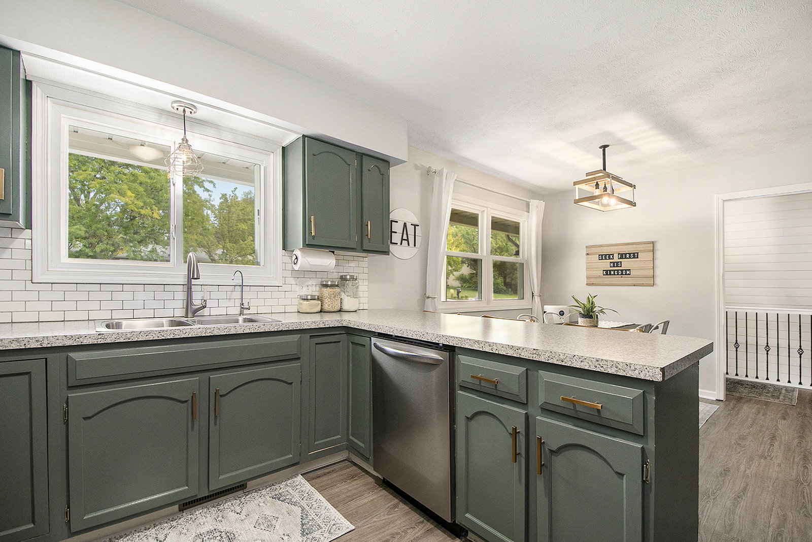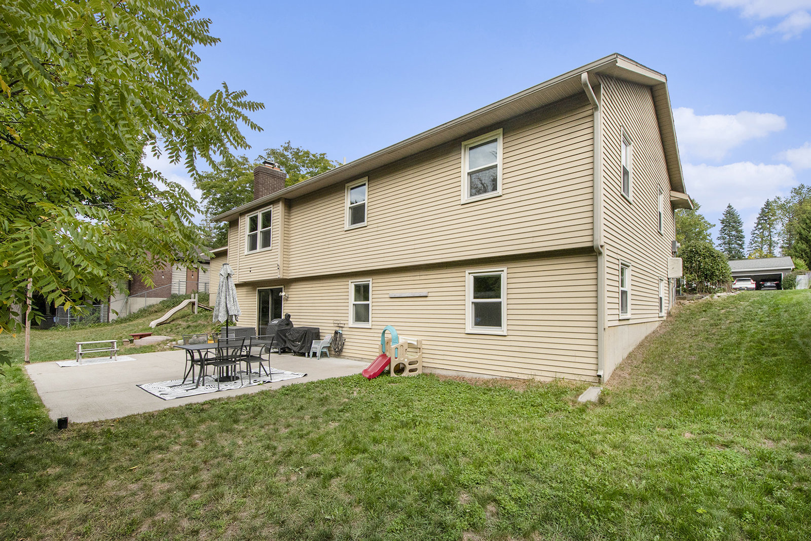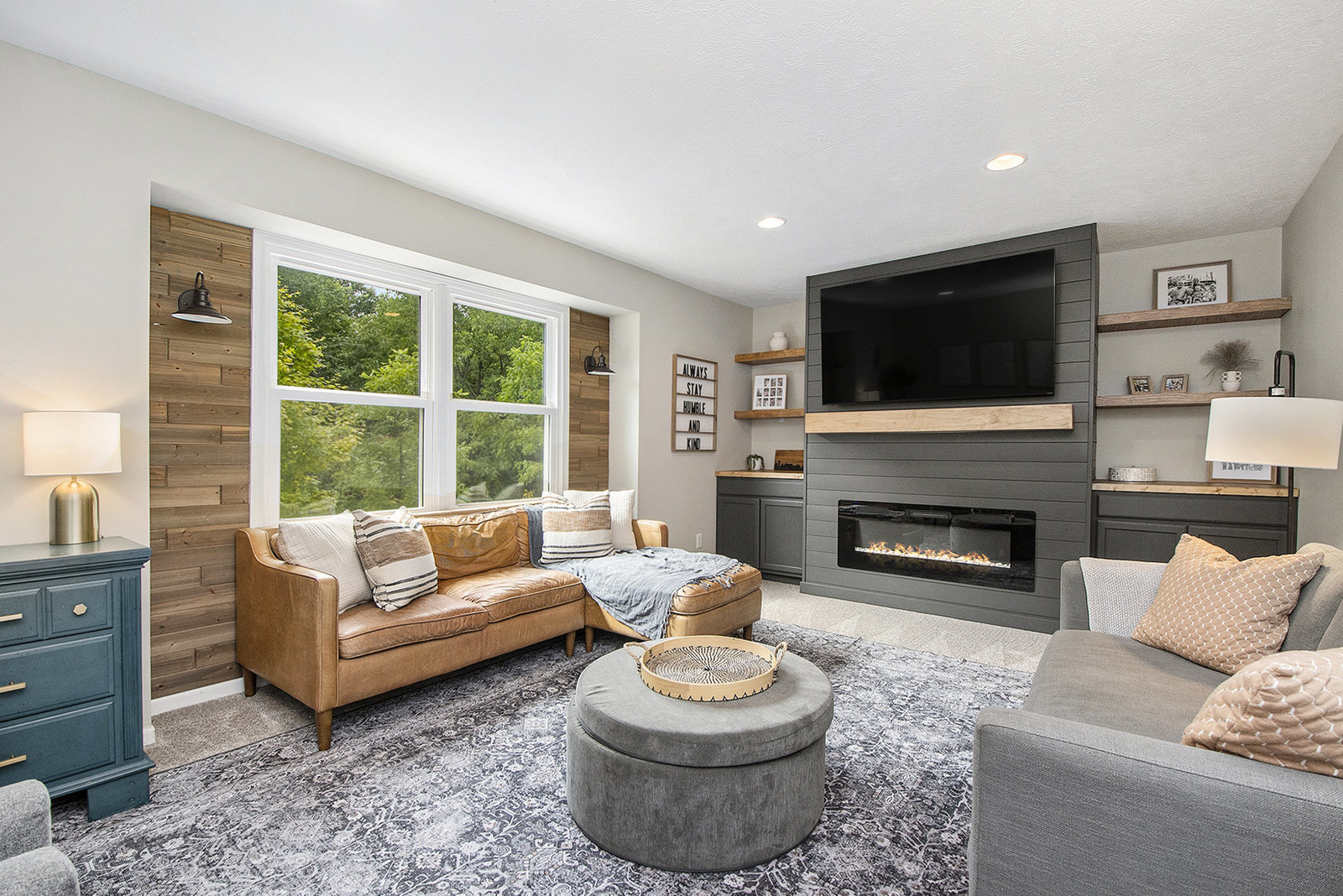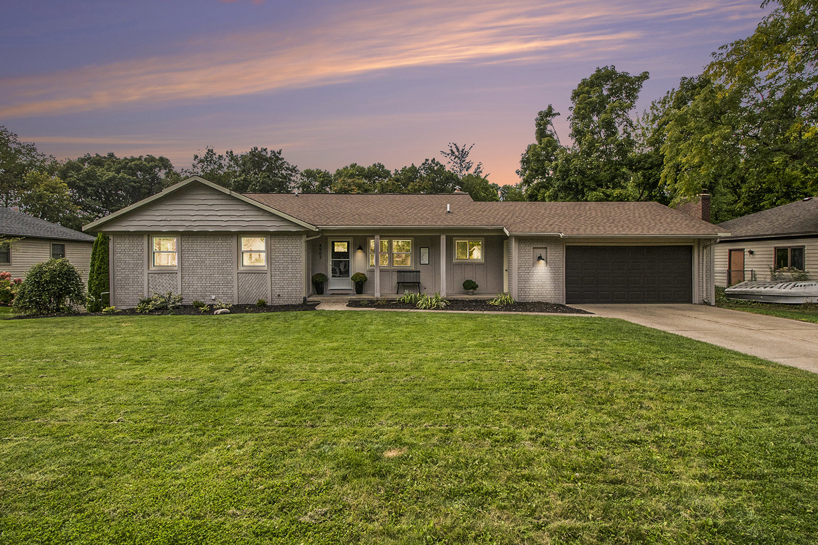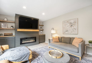 Nicely updated five-bedroom, three-bathroom walkout ranch in the desirable Northview School District. The main floor features brand new carpeting and an open living area with a sleek linear fireplace, built-in cabinets, and floating shelves. The kitchen has been thoughtfully refreshed with painted cabinets, a subway tile backsplash, updated hardware, and stainless steel appliances. Just inside the attached two-stall garage is a convenient drop zone with built-ins for coats and shoes. The walkout lower level adds a spacious family room with a wood-burning fireplace, built-in shelving, and a slider leading to a large cement patio that overlooks the private backyard setting. The yard backs up to woods, offering a peaceful and semi-private feel while still being just minutes from everything that Plainfield and Northland Drive have to offer. Additional highlights include a primary suite with dual closets and a private bath, vinyl replacement windows, and a new furnace and AC installed in 2017. This is a great location with easy access to expressways, Rockford, and Downtown Grand Rapids.
