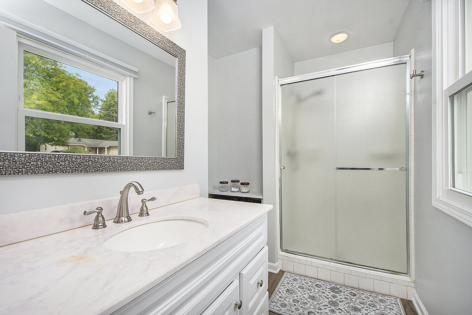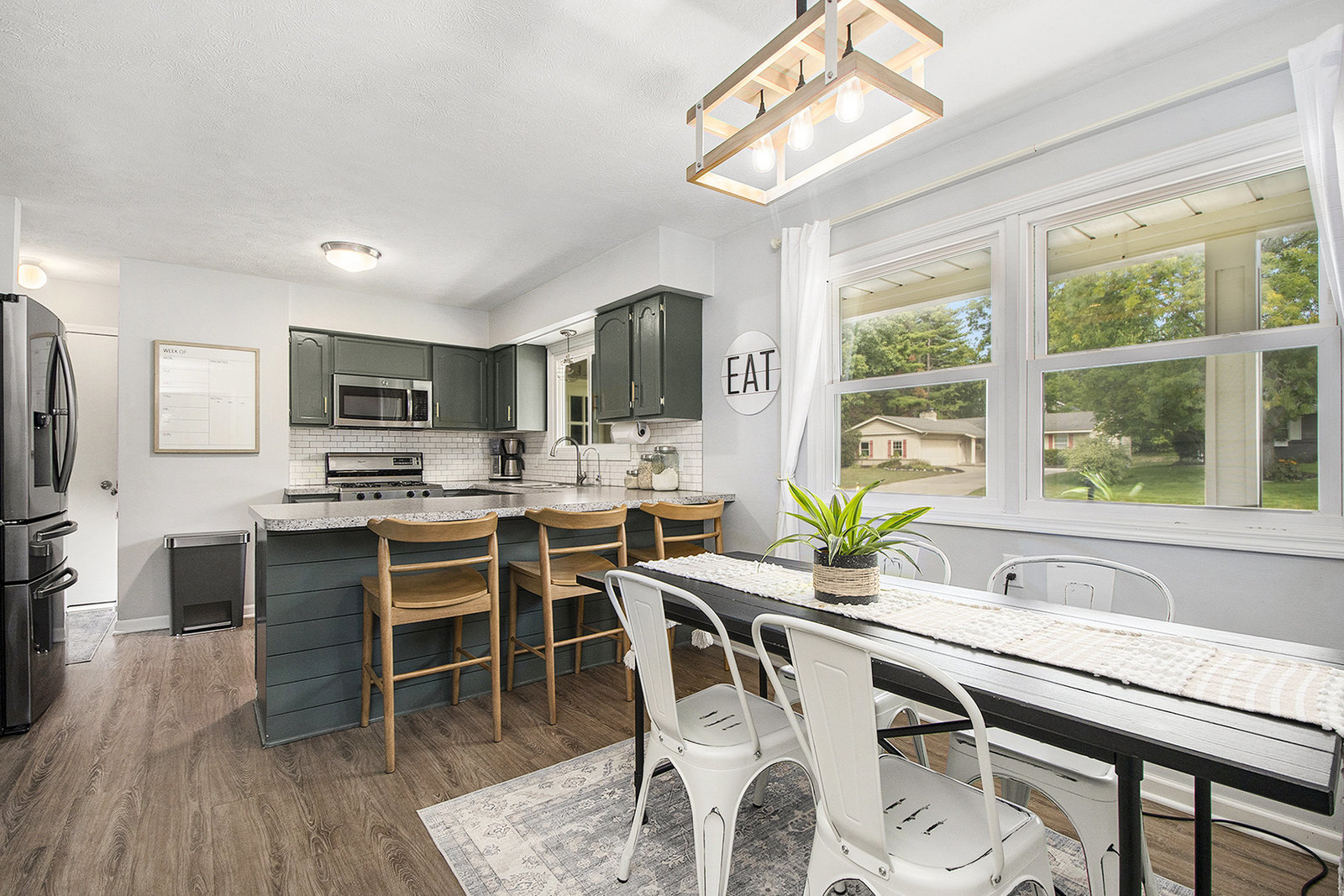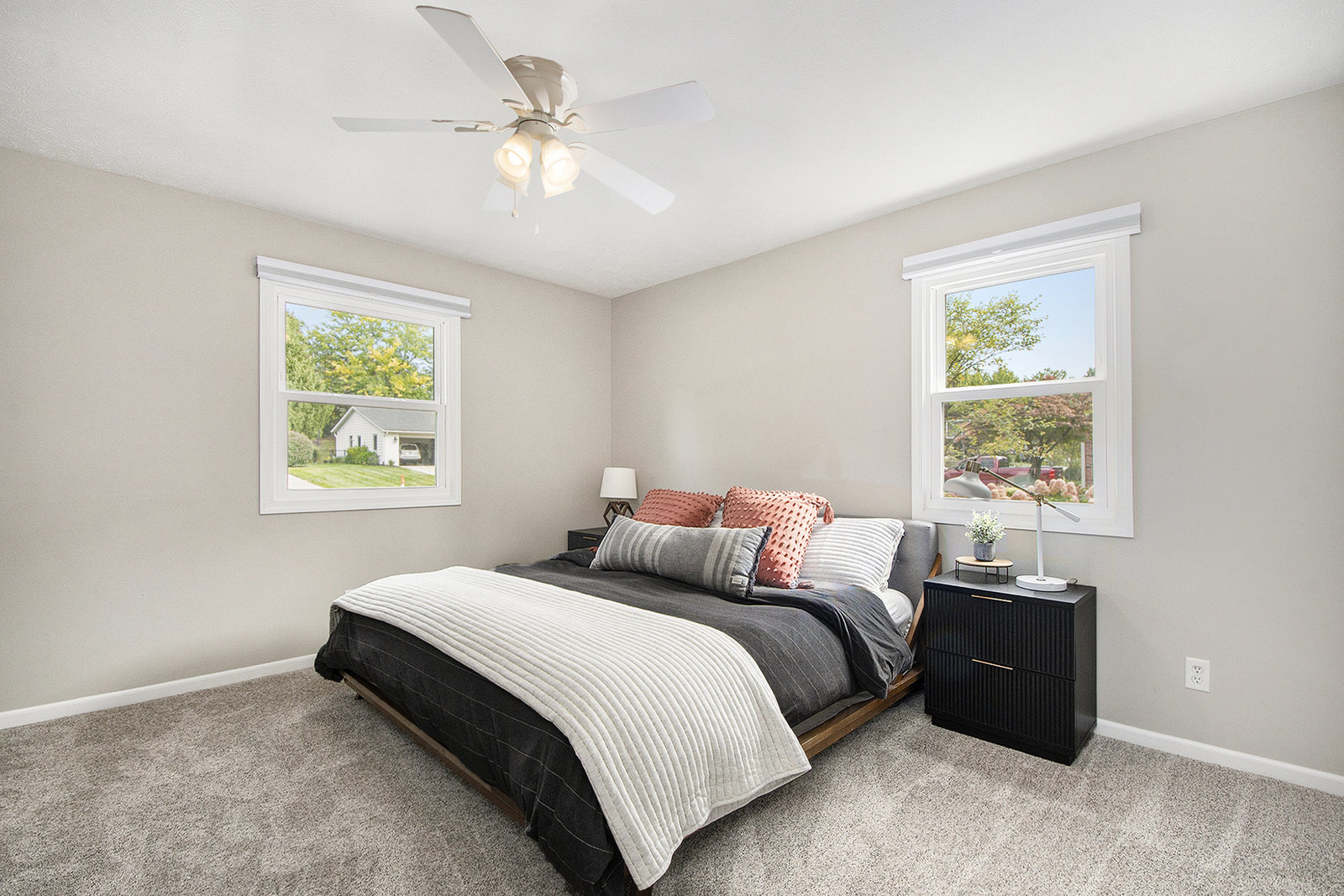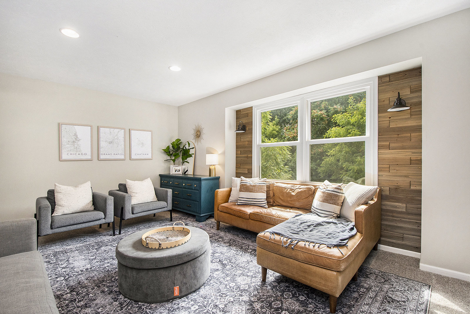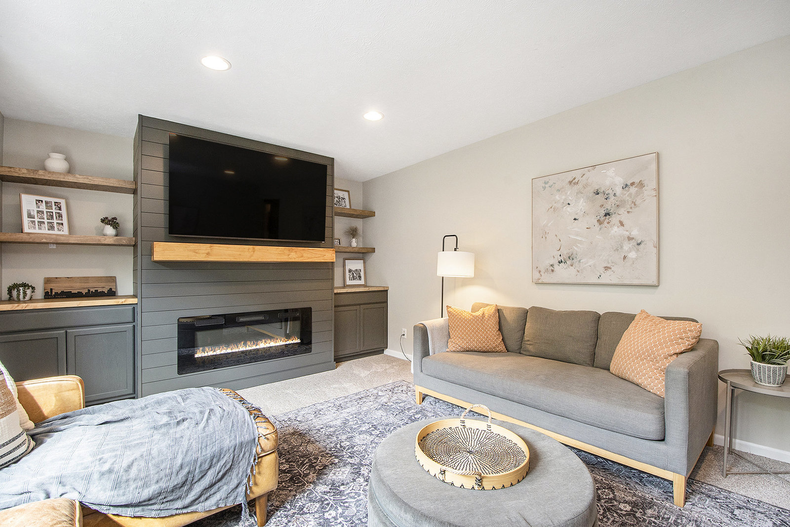 Nicely updated five-bedroom, three-bathroom walkout ranch in the desirable Northview School District. The main floor features brand new carpeting and an open living area with a sleek linear fireplace, built-in cabinets, and floating shelves. The kitchen has been thoughtfully refreshed with painted cabinets, a subway tile backsplash, updated hardware, and stainless steel appliances. Just inside the attached two-stall garage is a convenient drop zone with built-ins for coats and shoes. The walkout lower level adds a spacious family room with a wood-burning fireplace, built-in shelving, and a slider leading to a large cement patio that overlooks the private backyard setting. The yard backs up to woods, offering a peaceful and semi-private feel while still being just minutes from everything that Plainfield and Northland Drive have to offer. Additional highlights include a primary suite with dual closets and a private bath, vinyl replacement windows, and a new furnace and AC installed in 2017. This is a great location with easy access to expressways, Rockford, and Downtown Grand Rapids.