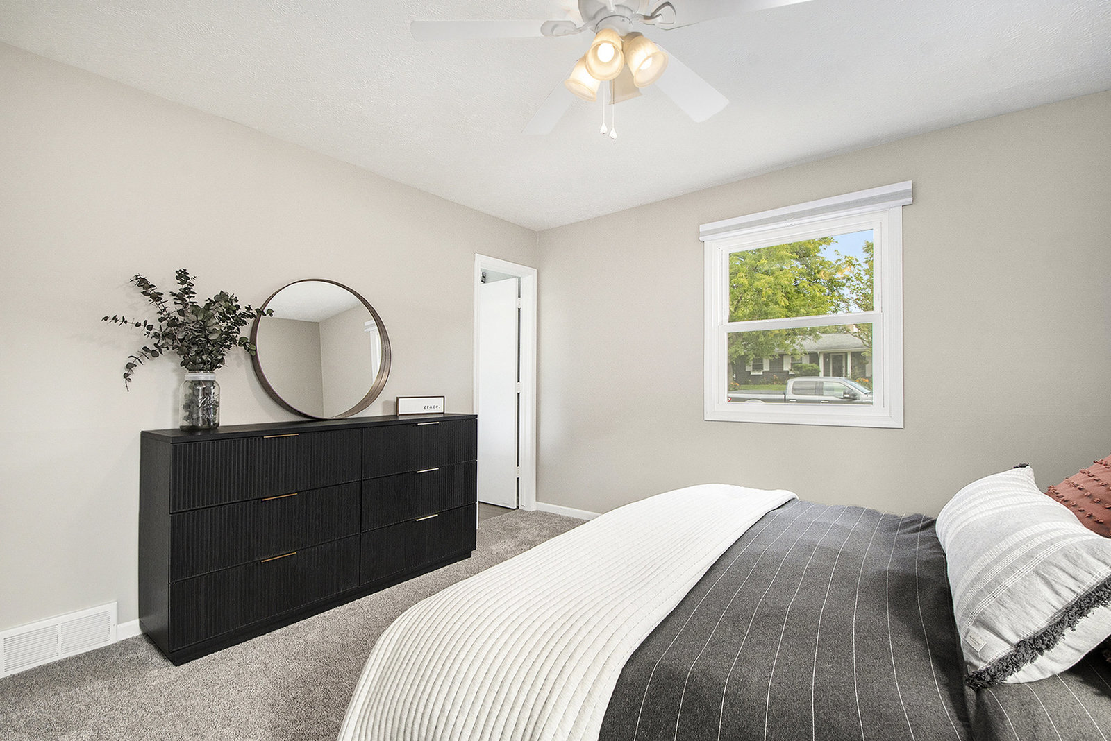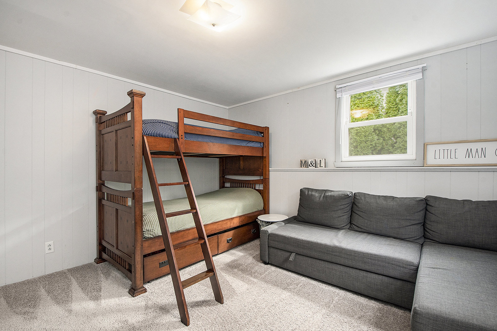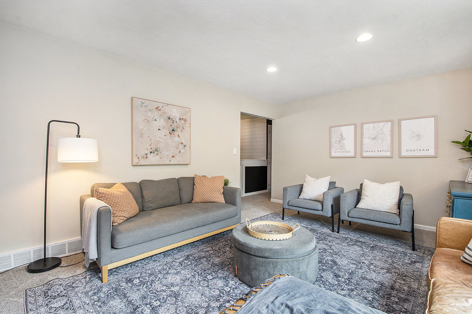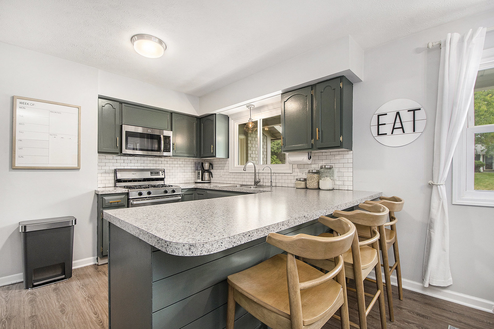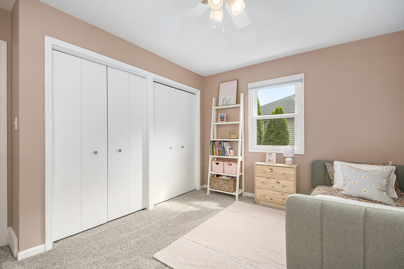 Nicely updated five-bedroom, three-bathroom walkout ranch in the desirable Northview School District. The main floor features brand new carpeting and an open living area with a sleek linear fireplace, built-in cabinets, and floating shelves. The kitchen has been thoughtfully refreshed with painted cabinets, a subway tile backsplash, updated hardware, and stainless steel appliances. Just inside the attached two-stall garage is a convenient drop zone with built-ins for coats and shoes. The walkout lower level adds a spacious family room with a wood-burning fireplace, built-in shelving, and a slider leading to a large cement patio that overlooks the private backyard setting. The yard backs up to woods, offering a peaceful and semi-private feel while still being just minutes from everything that Plainfield and Northland Drive have to offer. Additional highlights include a primary suite with dual closets and a private bath, vinyl replacement windows, and a new furnace and AC installed in 2017. This is a great location with easy access to expressways, Rockford, and Downtown Grand Rapids.