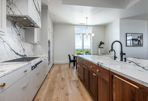• Gourmet chef’s kitchen featuring elegant Neolith porcelain countertops