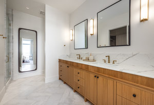 • Heated floors in the spa-inspired primary bathroom