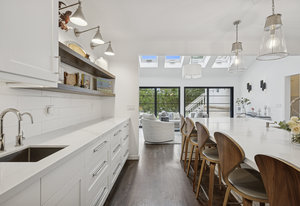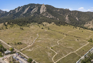 Experience Boulder's most coveted lifestyle in this exceptional residence, just steps from Chautauqua Park and Auditorium. Set on a generous half-acre lot with over 7,200 square feet, the home combines timeless design with modern updates, recently completed by Donohoe Builders, and interiors by Deidre Oliver of Oliver Designs. The main level welcomes with a marble foyer leading to an open, light-filled floor plan. At its heart, a chef's kitchen features a striking white quartz waterfall island, Sub-Zero refrigeration, six-burner Wolf range, two Bosch dishwashers, and a built-in coffee-espresso maker. Adjacent spaces include a sitting room with sliding doors to the backyard, a stylish office with moss rock fireplace, a 5-person spa room with hot tub and outdoor shower, and a living and dining area with vaulted ceilings and wall-to-wall windows framing breathtaking Flatiron views. Upstairs, the primary suite offers a private deck, wood-burning fireplace, and luxurious bath with soaking tub, Carrera marble shower, dual walk-in closets, and laundry. A guest bedroom with adjacent full bath is ideal as a nursery, office, or overnight guest stay. The lower levels provide three additional bedrooms with walk-in closets, two shared full baths, a dedicated office with deck, media room, gym/recreation space, and flexible living areas with backyard access. Outdoors boasts mature landscaping, a flagstone patio, and multiple private decks. Thoughtful interior details like custom lighting, skylights, walnut and white marble flooring, plantation shutters, and Pella windows create an inviting, modern environment. With hiking trails, concerts, and community events just steps away, plus Pearl Street's dining and shopping a minutes' drive from home, this property offers a rare combination of sophistication, comfort, and connection to Boulder's iconic natural and cultural lifestyle.