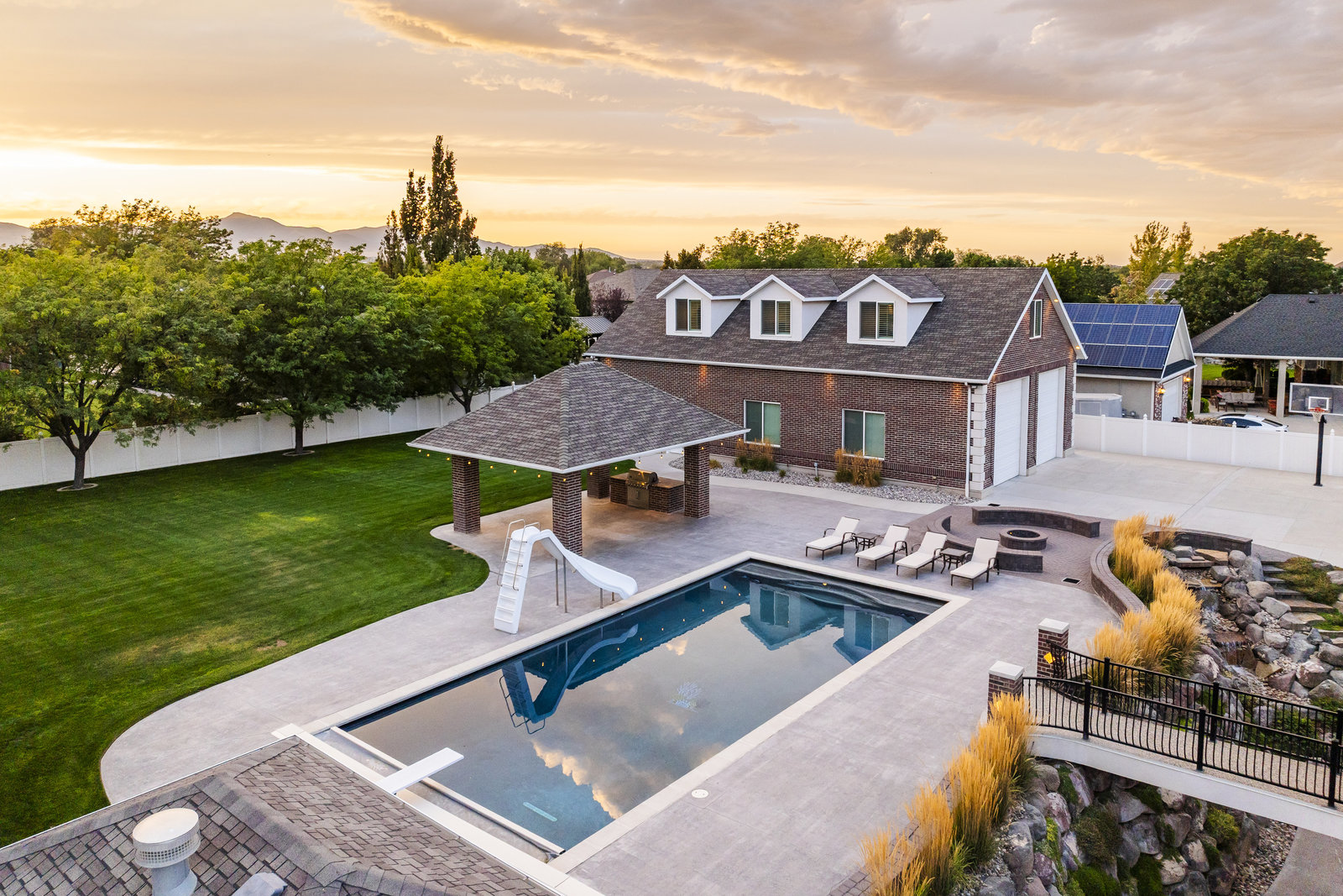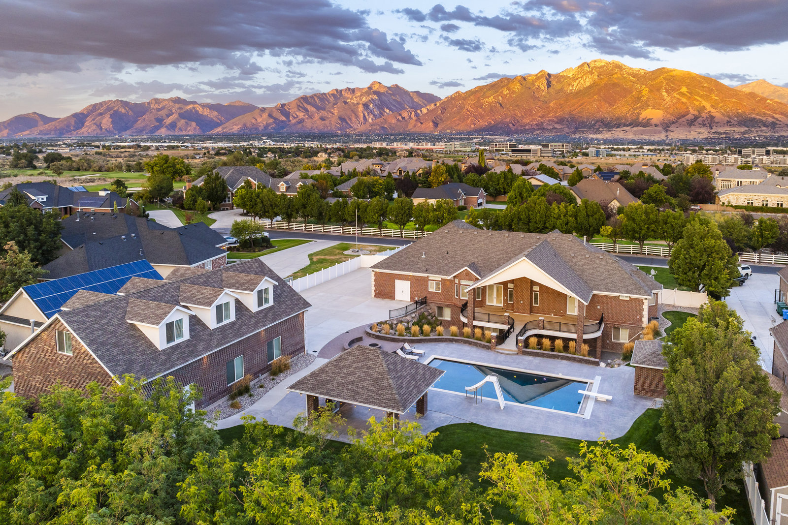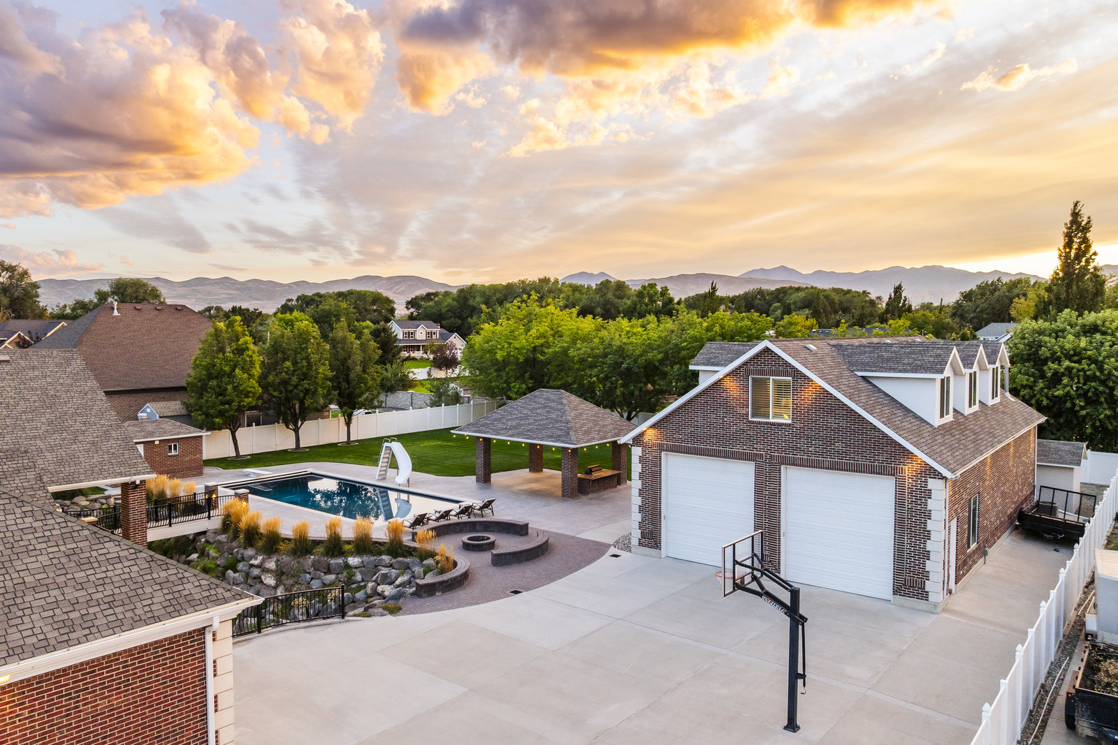 Exceptional Custom-built Estate home showcasing timeless red brick architecture on a stunning one-acre parklike setting. This meticulously maintained residence, lovingly cared for by its original owners, offers the ultimate in luxury living and entertainment. Thoughtfully curated with uncompromising attention to quality and craftsmanship. Soaring 10-foot ceilings throughout the main floor and basement create an impressive sense of space and grandeur. The heart of the home features a deluxe chef's kitchen perfect for culinary enthusiasts and hosting gatherings. Resort-style amenities include a pristine saltwater pool for relaxation and recreation. Car enthusiasts and collectors will appreciate the impressive 14-car garage capacity with an 8-car attached garage and 6-car heated detached garage, providing abundant space for vehicles, toys, and storage. The heated detached garage features a fully furnished 2-bedroom, 2-bathroom ADU above, perfect for guests, rental income, or multi-generational living. Peace of mind comes standard with a whole-home Generac generator ensuring uninterrupted power. Prime Riverton location in the heart of the Salt Lake Valley offers the perfect balance of tranquil living and convenience - just minutes from Riverbend Golf Course, I-15 access, and downtown Riverton shopping, while being ideally positioned 30 minutes from both Salt Lake City and Provo, and 30 minutes from Utah's famous world-class skiing. The expansive grounds offer endless possibilities for outdoor enjoyment and privacy. This property cannot be rebuilt for this price - with too many exceptional custom features to list here, this is truly a rare opportunity to own a sophisticated custom estate that seamlessly blends classic elegance with modern luxury and unparalleled functionality. You don't want to miss this home! Call for a private showing. All buyers must provide proof of funds prior to an approved appointment. Listing agent must be present for all showings.