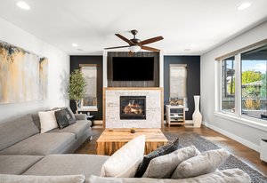 Upstairs, two secondary bedrooms each feature ensuite baths, while a loft offers a flexible space for reading, work, or play. The primary suite is a retreat, complete with a fireplace, private deck, 5-piece bathroom and spacious walk-in closet.