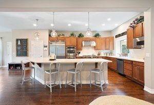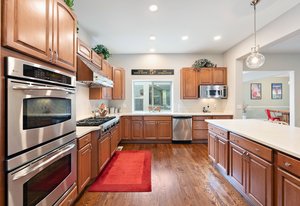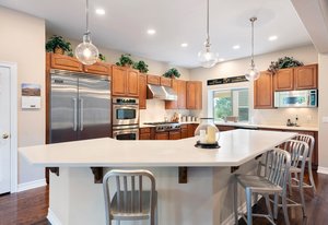 The kitchen flows seamlessly from the family room and is as functional as it is beautiful. Outfitted with Viking appliances, custom cabinetry, generous counter space, and a large pantry, it easily supports daily routines while shining during entertaining. Whether hosting friends or enjoying a quiet evening at home, the layout feels effortless and connected.