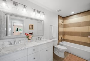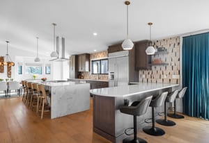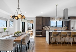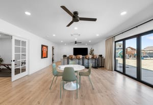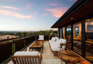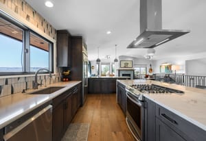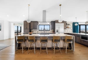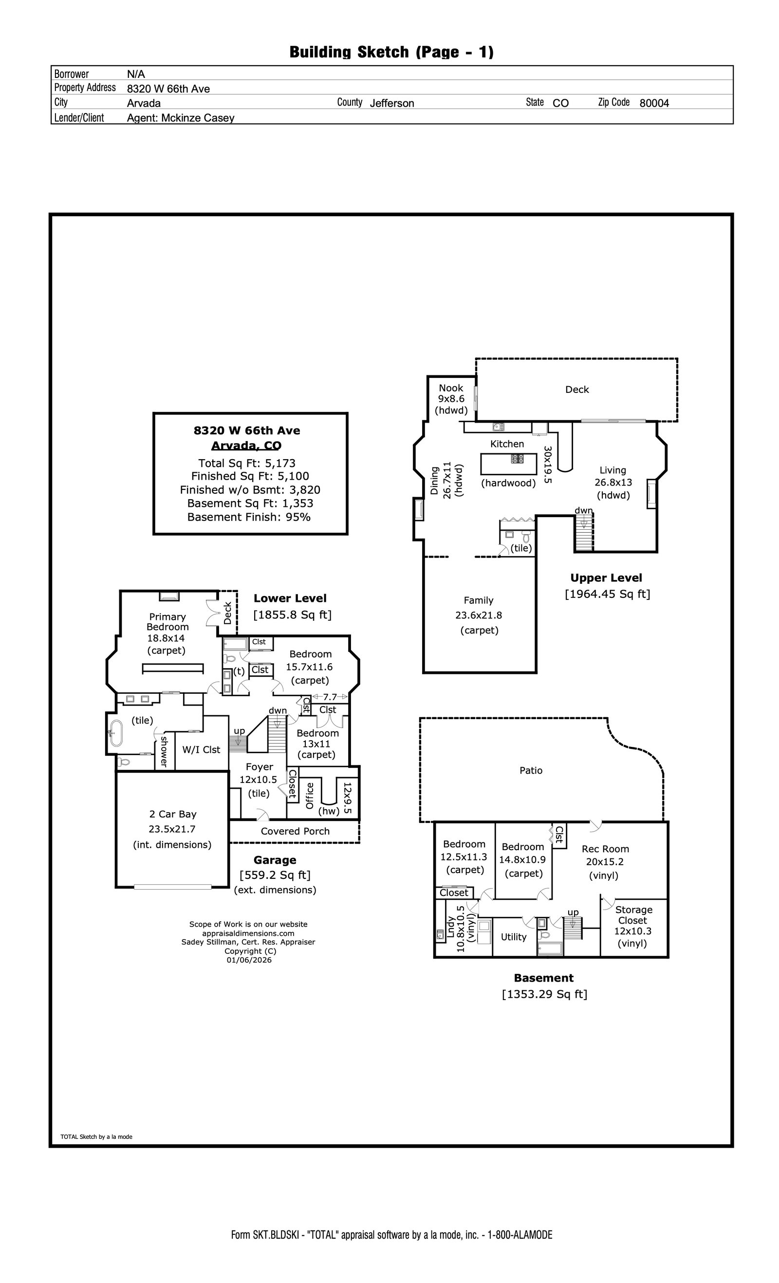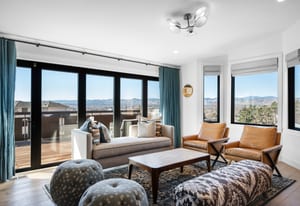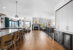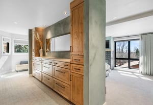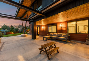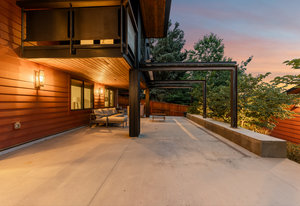 A true unicorn in Arvada. The main home was fully reimagined from the studs and sits on two combined parcels, along with a finished ADU, and minutes from Olde Town Arvada with easy access to downtown Denver. The footprint includes a 14k+ SF homesite and 14k+ SF lot, offering rare privacy and scale. Parking includes 4 garage spaces, gated driveway, dedicated RV space, and additional pad. The entry opens to a formal landing with built-in mud zone and front office with two workspaces. Steps above, the main living centers around a tiled fireplace framed by windows + multiple seating areas. Panoramic doors open to expansive deck with city and mountain views, connecting indoor-outdoor living. An eat-in waterfall-edge quartzite island and six-burner gas range anchor the kitchen. A window above the sink overlooks the mountains. Ceiling-height tile backsplash + cabinetry provide abundant storage. Stainless steel LG appliances include double ovens paired with KitchenAid refrigeration. Built-ins behind the island add storage + Avallon beverage fridge. Formal dining features a second fireplace and window-wrapped breakfast nook with deck access, while secondary living creates a tucked-away gathering space. The primary suite sits behind a custom feature wall with built-ins, and includes a fireplace, seating, and private balcony. The ensuite bath offers dual vanities, steam shower, soaking tub, LED-lit vanity, and walk-in closet. Two additional bedrooms share a bath with dual sinks. The lower level includes rec space with wet bar, two bedrooms, full bath, and laundry. The backyard features landscaped greenspace and patio beneath a KE retractable pergola. A fully finished ADU offers flexibility for multi-generational living / rental income, with Panoramic doors, wet bar, gym, studio, 3/4 bath, two-car garage, and RV parking. A property of this scale, on two parcels, finished ADU, and mountain views, moments from dining, shops, and light rail of Olde Town Arvada, is a rare offering.