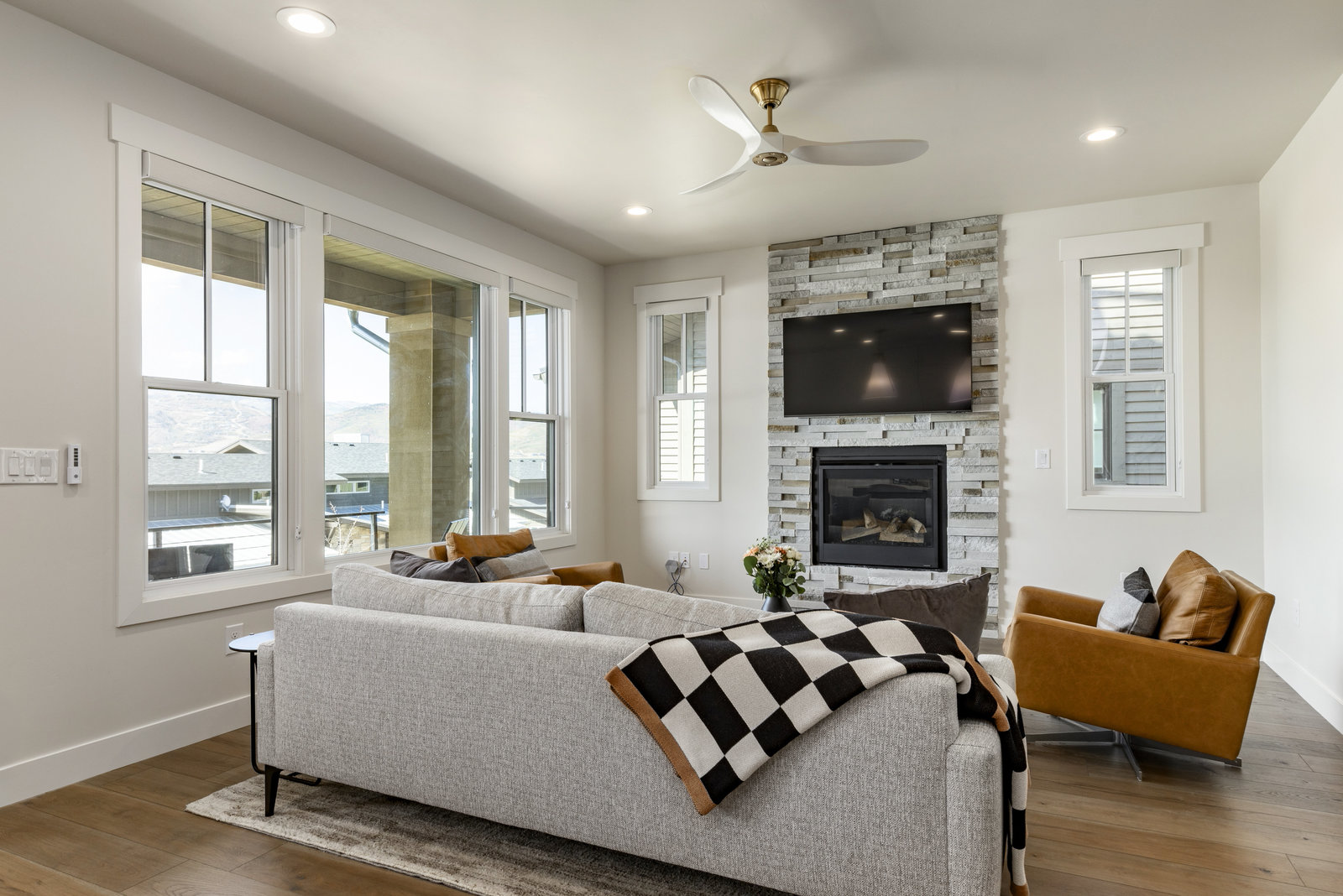 Set above the Jordanelle Reservoir with Deer Valley® ski-run views and lake views, this Deer Waters residence delivers the ideal Park City lifestyle, minutes to Old Town, Deer Valley® East Village, and year-round recreation. Inside, enjoy multiple living spaces (two living rooms plus a loft), a bright open kitchen with quartz countertops, and a statement Majestic Mercury 36” gas fireplace wrapped in a floor-to-ceiling cultured-stone surround. Thoughtful upgrades continue throughout: soft-close Mastercraft/Medallion Lancaster cabinet package, Daltile backsplash, upgraded lighting, dual-zone HVAC, tankless water heater, and a Nest smart package for thermostats and exterior cameras. The primary suite features a double vanity and a beautifully finished bath with upgraded tile and a Euro-glass enclosure. Outdoor living is dialed in with a covered deck and patio, BBQ gas line, and a walk-out basement leading to the lower patio hot tub—perfect after a ski day or a trail run. The two-car garage includes an epoxy floor, and the community offers convenient overflow parking for hosting and entertaining. Deer Waters residents enjoy pickleball courts, adjoining hike/bike trail access, and non-motorized Jordanelle Reservoir access, with Ross Creek cabanas/pavilions available for beach days. Plus, you’re approximately 8 minutes to Main Street Park City, 10 minutes to Deer Valley® East Village, 15 minutes to the Uinta National Forest, 20 minutes to Heber Valley, and 35 minutes to SLC. International.