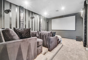 featuring a formal living and dining room, a gourmet kitchen with granite countertops, a theatre room, and