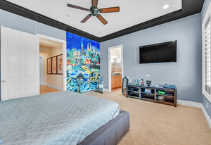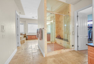 walk-in closet, while the primary suite the only bedroom upstairs boasts expansive balconies overlooking