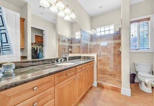 a spacious flex room. Each secondary bedroom is located on the main level with its own ensuite bath and