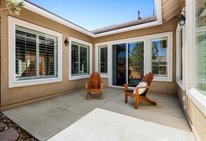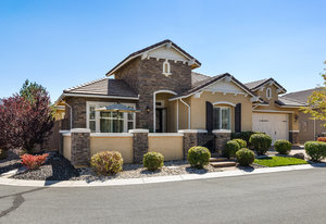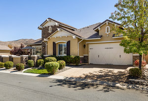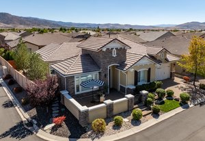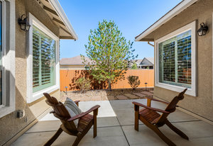This Regency at Presidio offers turnkey luxury, thoughtful upgrades, and effortless 55+ living in one of Reno's most desirable active adult communities. With 2 bedrooms, 2.5 bathrooms, and 2,223 square feet, this home blends style, comfort, and convenience in a layout designed for both daily living and entertaining. Step outside to experience three separate, beautifully landscaped outdoor spaces: a private courtyard for morning coffee, a side patio perfect for intimate gatherings, and a backyard ideal for relaxing and entertaining. Each space is low-maintenance and thoughtfully designed to maximize privacy and enjoyment, while keeping you just steps away from the clubhouse and community amenities, including fitness, walking paths, and social activities. Inside, the home is filled with upgrades that would cost tens of thousands to replicate today. Hardwood floors flow throughout the main living spaces, complemented by custom cabinetry, built-ins, and premium storage solutions. The kitchen features soft-close cabinets, full-extension drawers, and the KitchenAid Gourmet Package with built-in refrigerator and wine fridge, making hosting effortless. The primary suite is a private sanctuary, complete with frameless rain-style glass, solar tube lighting, and upgraded finishes, while bathrooms and living areas reflect quality craftsmanship and attention to detail throughout. Technology and comfort are seamlessly integrated, including a home theatre sound package, upgraded HVAC, radiant barrier roof, insulated walls, and advanced window treatments, creating a home that's as efficient as it is elegant. Every detail from courtyard gates and in-ground lighting to upgraded doors and garage-yard access enhances the sense of luxury and ease. Highly regarded by neighbors as one of the top homes on the market, 2220 Arpagos Lane delivers turnkey living with upgrades, privacy, and style that are rarely available in Presidio. For those seeking move-in ready perfection in a vibrant 55+ community, this is it!