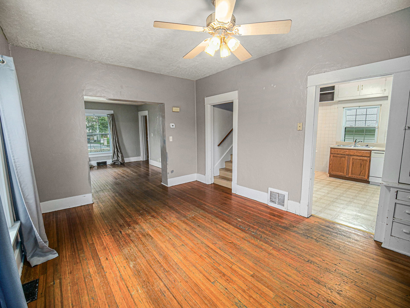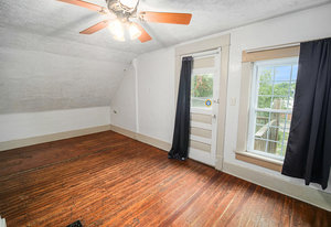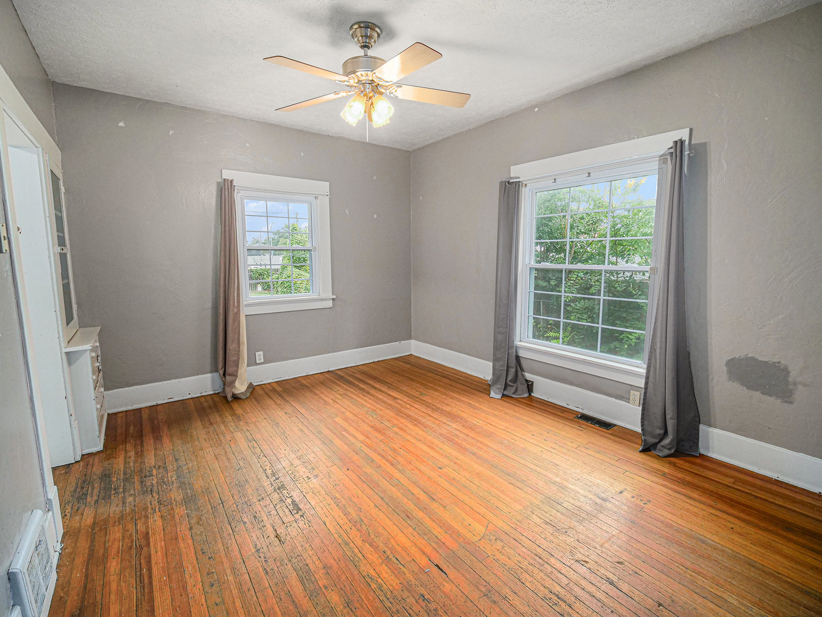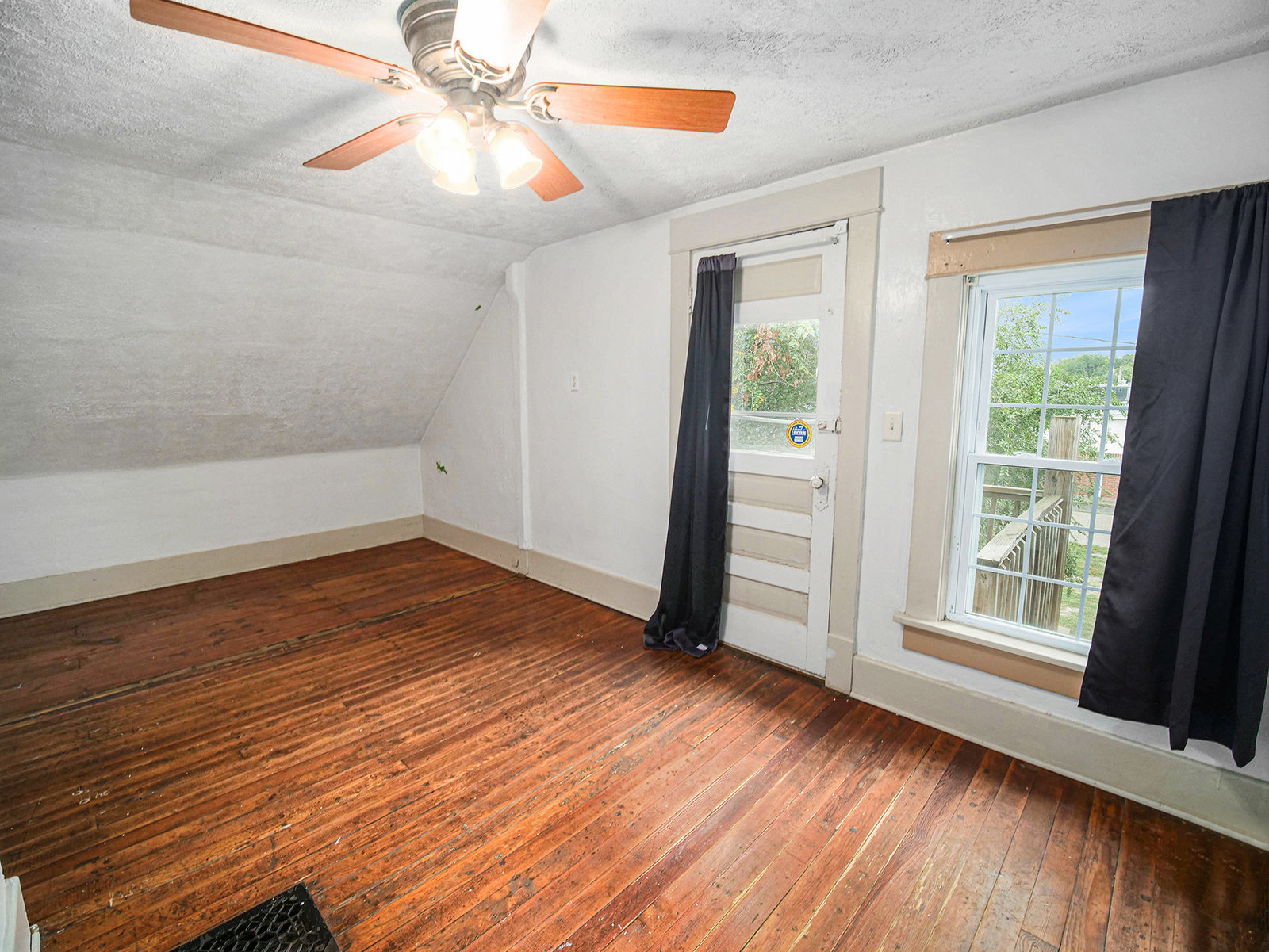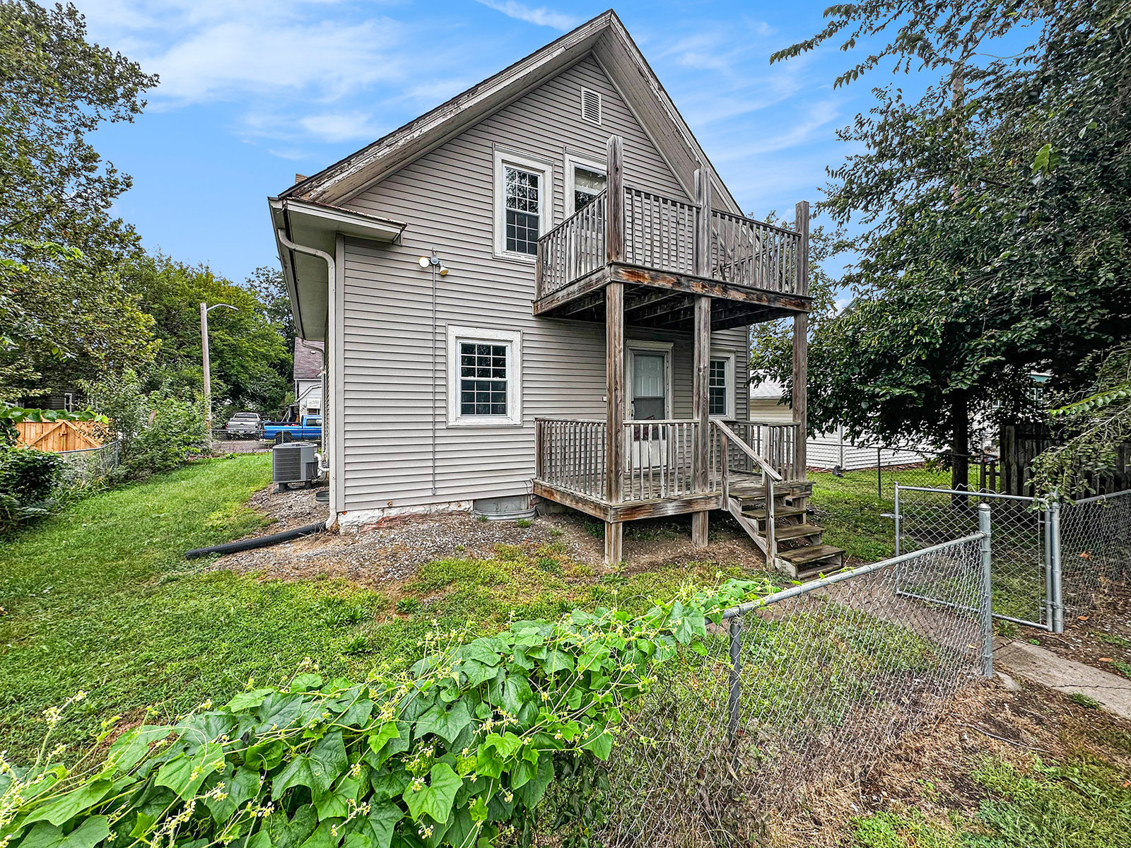 Welcome all to this 1.5 story home on a quiet street. At 1500 sqft, this home has 4 bedrooms, 3 bathrooms, and a fully-fenced yard with 2 covered porches and a private balcony. The main floor opens to the main living room with large windows and original hardwood floors, a separate dining room, a kitchen (pantry), a bedroom, and a guest bath. The upstairs contains the primary bedroom, a 3rd bedroom, and a full bathroom. The basement contains the 4th bedroom, the 3rd bathroom (full), and a separate laundry room. Newer AC (2024) and HVAC (2023). Off-street parking space behind the home. Call today!