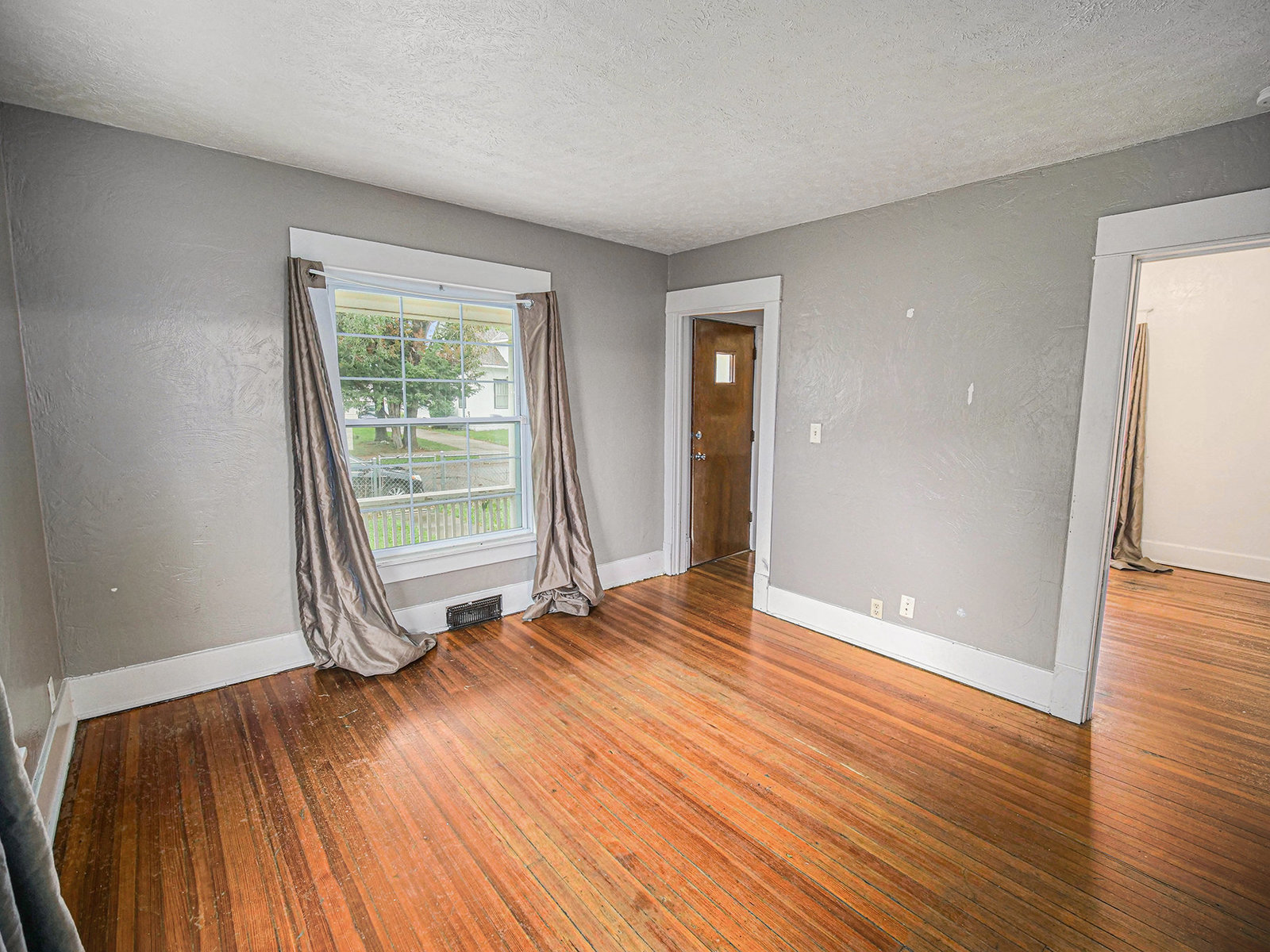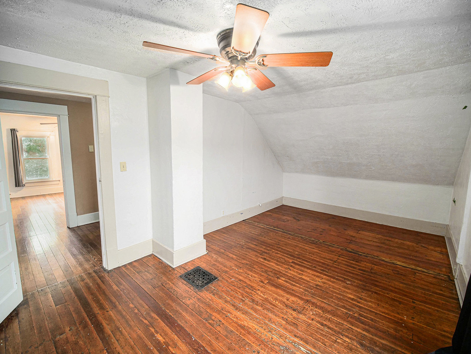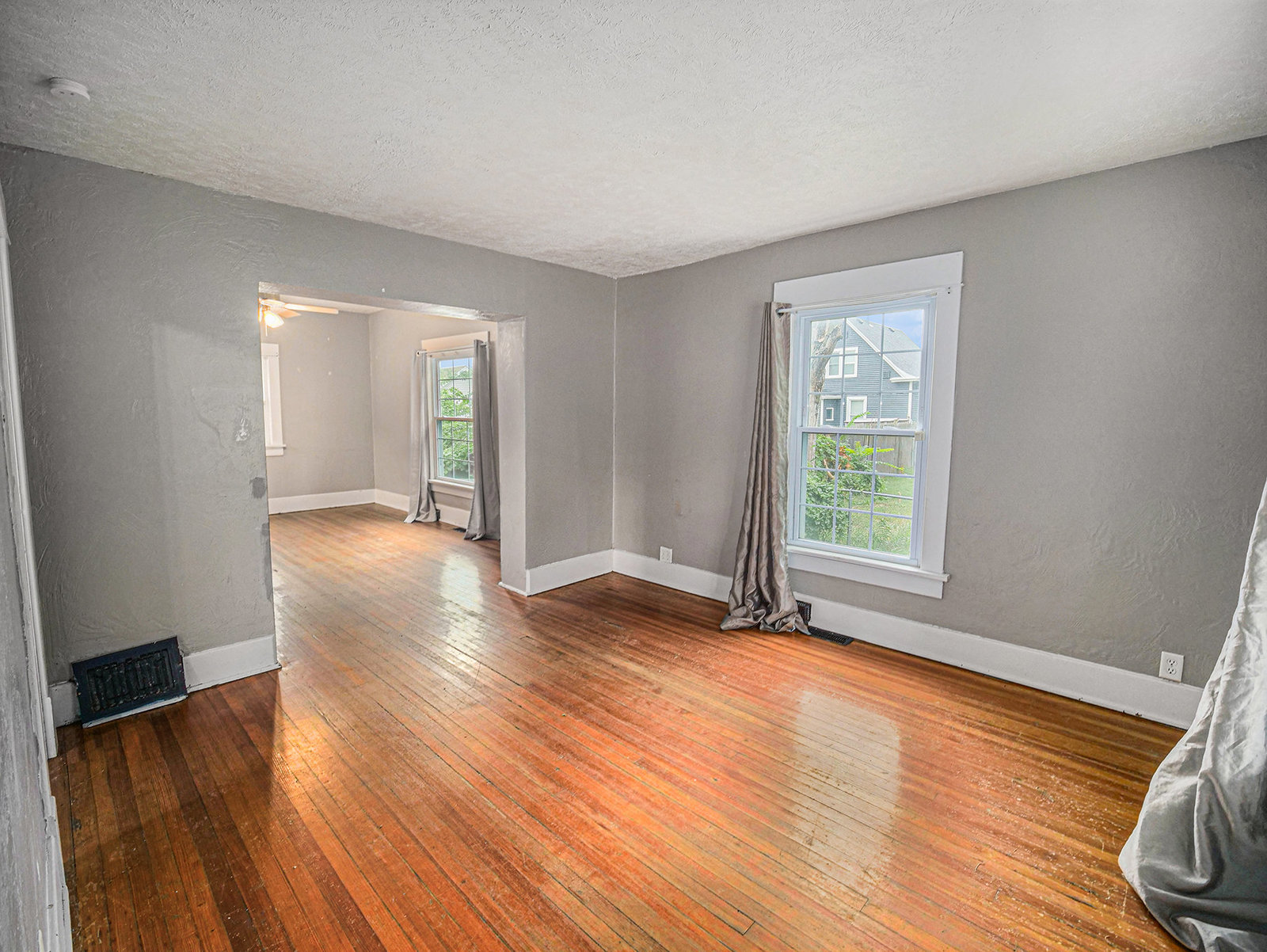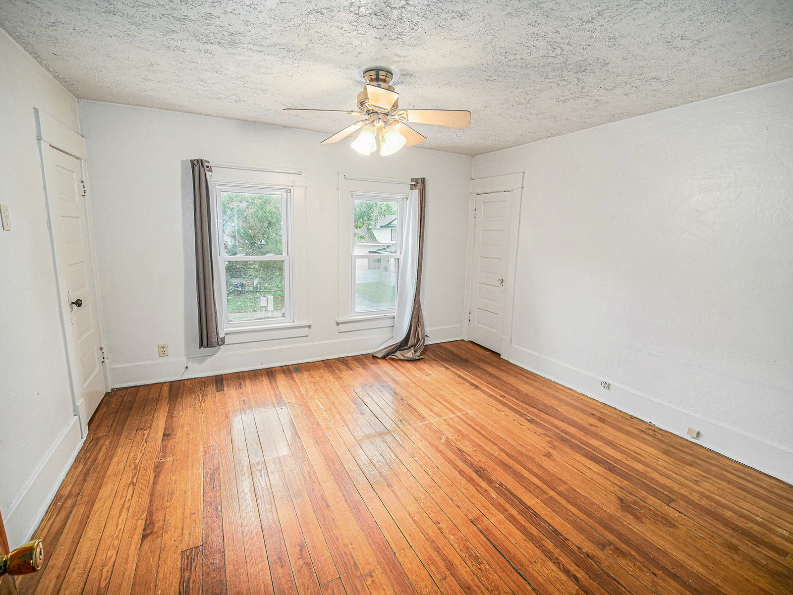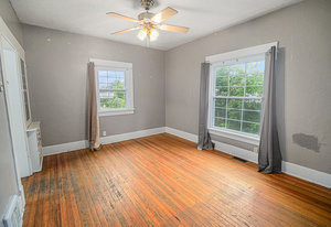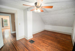 Welcome all to this 1.5 story home on a quiet street. At 1500 sqft, this home has 4 bedrooms, 3 bathrooms, and a fully-fenced yard with 2 covered porches and a private balcony. The main floor opens to the main living room with large windows and original hardwood floors, a separate dining room, a kitchen (pantry), a bedroom, and a guest bath. The upstairs contains the primary bedroom, a 3rd bedroom, and a full bathroom. The basement contains the 4th bedroom, the 3rd bathroom (full), and a separate laundry room. Newer AC (2024) and HVAC (2023). Off-street parking space behind the home. Call today!
