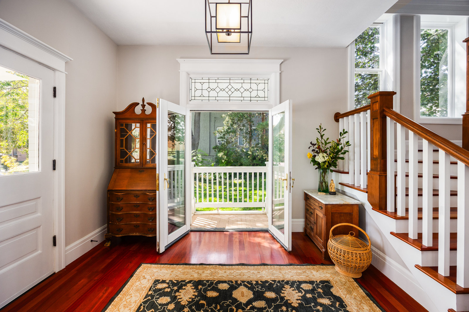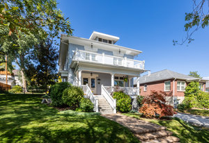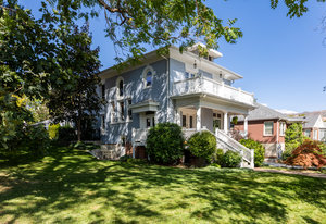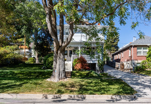 An iconic Avenues residence, this stately 2-story Four Square blends timeless architecture with modern sophistication. A stunning entryway with a graceful double staircase opens to elegant formal living and dining spaces, rich Brazilian cherry flooring, and a beautifully updated kitchen that flows seamlessly into an expansive great room addition, complete with heated floors, perfect for gathering and entertaining. The oversized primary suite is a true retreat, featuring a spacious walk-in closet, a luxurious bath, and direct access to the back balcony overlooking the lush backyard. A fabulous sitting porch, paired with a front balcony, extends the living spaces outdoors. Rare for The Avenues ...