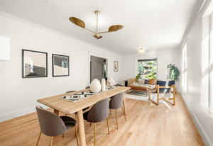 This fully renovated single-family residential property features a seamless blend of elegance with modern design across each of its three stories. Find original architectural features including original windows integrated with cutting edge technology. Enjoy custom kitchens and bathrooms crafted with both functionality and style in mind. Spacious rooms boast high ceilings, wood floors, and abundant natural light. A fully renovated basement is a welcome addition to this three-story haven, including a recreation room, ensuite bath, and ample storage space.