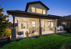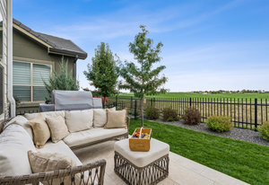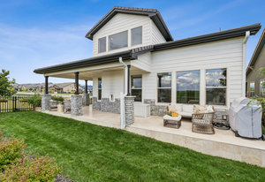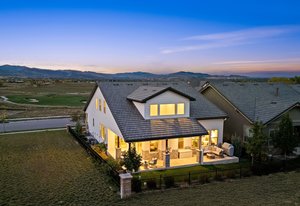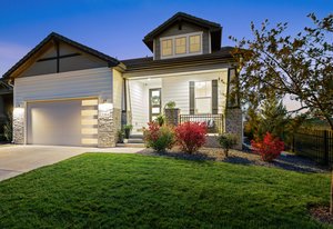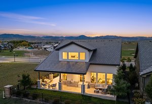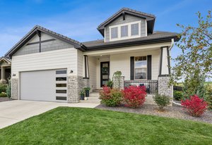 Live the TPC Colorado Lifestyle! This stunning patio home sits directly on the 5th hole of the TPC Championship Golf Course, offering unparalleled golf course and mountain views. The fenced backyard provides privacy and showcases a beautifully upgraded wrap-around patio with travertine flooring, perfect for outdoor entertaining. The west-facing front porch captures Colorado's breathtaking sunsets over the mountains, while the back patio offers serene views of the fairway. Inside, enjoy true indoor-outdoor living with a 12-foot sliding door connecting the open-concept great room and dining area to the patio. The sun-filled primary suite features large windows, and a spa-inspired bathroom with an upgraded shower that includes a soaking tub inside the shower enclosure. Upstairs, the guest quarters offer two bedrooms, a full bath, and a loft-perfect for family or visitors. The home also includes a spacious laundry room with potential to expand into the primary closet, plus an unfinished basement with a rough-in for future living space. Residents enjoy lock-and-leave convenience with HOA-maintained landscaping and snow removal. Take advantage of the incredible amenities at Heron Lakes, including the 60,000-sq-ft clubhouse with multiple dining venues, a resort-style pool with a swim-up bar, a fitness center, and miles of trails. Experience the perfect blend of luxury, comfort, and low-maintenance living in this exceptional golf course patio home.