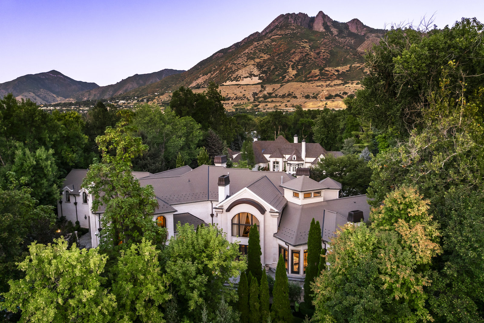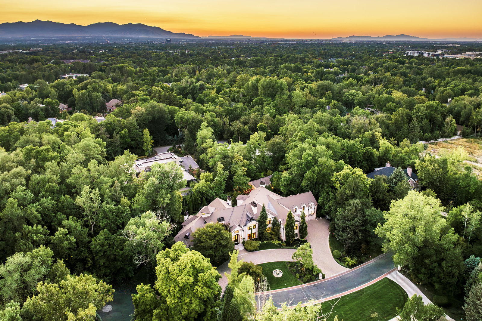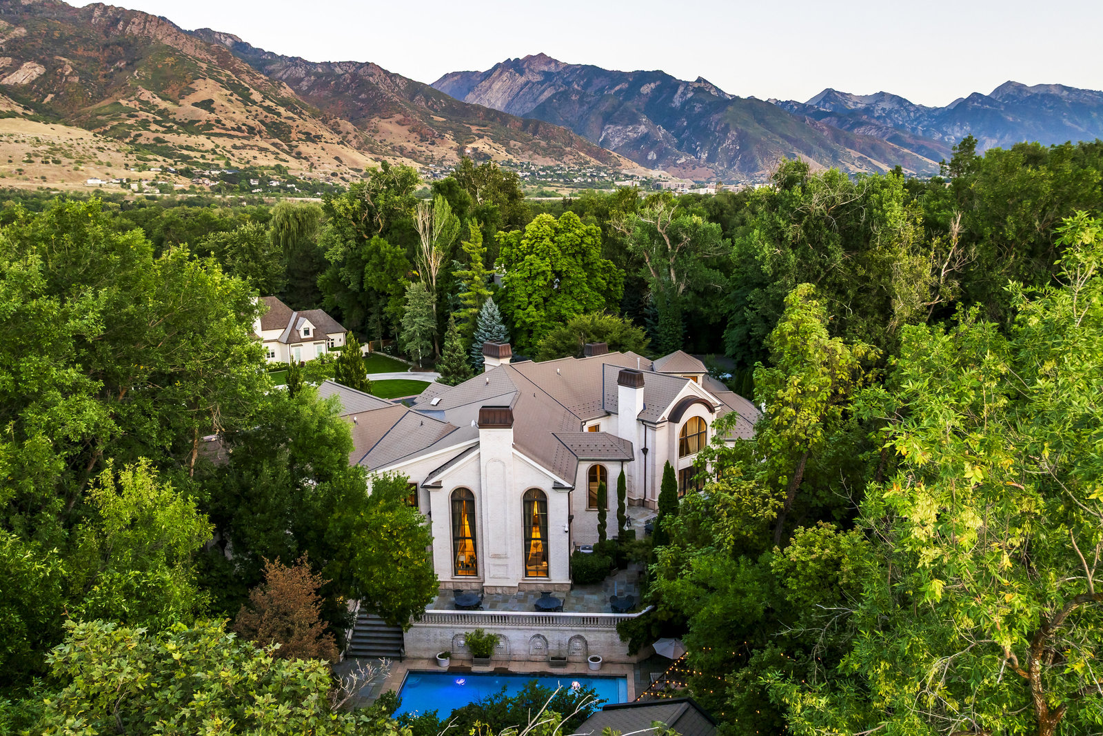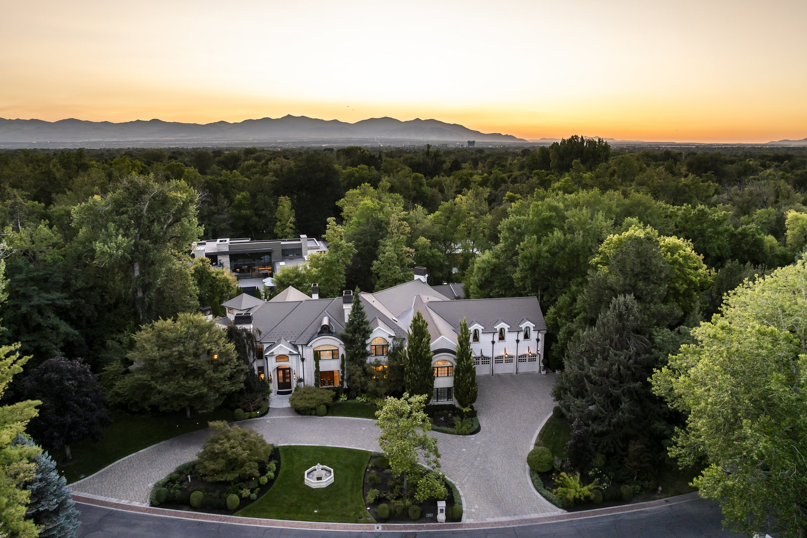 This extraordinary custom estate is nestled within the exclusive gated enclave off Holladay’s famed Walker Lane. Set on spectacular grounds with mature trees, manicured gardens, and a resort-style pool, this residence blends timeless European elegance with thoughtful modern amenities. The grand foyer sets the stage with marble floors and chandeliers imported from France. Throughout the home, exquisite millwork, hand-carved fireplaces, and bespoke light fixtures showcase unrivaled craftsmanship. An executive office features rich wood paneling, a gas fireplace, and a rolling library ladder leading to a lofted gallery, perfect for art, books, or quiet reflection. The formal dining room, anchored by a fireplace and expansive picture windows, seamlessly connects to a butler’s pantry and the chef’s kitchen, which boasts an oversized island, custom cabinetry, dual dishwashers, two sinks, and a full suite of luxury appliances. The kitchen opens to a soaring great room with floor-to-ceiling windows and casual dining spaces, ideal for entertaining or everyday living. The main level offers both formal and informal gathering areas, charming play spaces, generous storage, and a spacious five-car garage. The primary suite is a private retreat, complete with a lounge/office, gas fireplace, expansive his-and-hers closets, and separate spa-inspired bathrooms with soaking tubs, marble showers, and dressing vanities. Upstairs, three large en-suite bedrooms, a loft, a second laundry, a whimsical French-inspired playroom, and a vaulted theater create a welcoming and versatile layout. Outdoors, the estate transforms into a private resort setting with a pool, hot tub, outdoor kitchen, stone patios, and a two-bedroom, two-bath pool house with full kitchen and living room, ideal for extended guests. Across the stream, a storybook pavilion on the edge of the water invites moments of gathering, play, and celebration. Located in one of Utah’s most coveted neighborhoods, this estate offers unmatched privacy while being minutes from downtown, world-class skiing, shopping, dining, and outdoor recreation. Every detail has been meticulously curated, making this one of Utah’s most remarkable offerings.