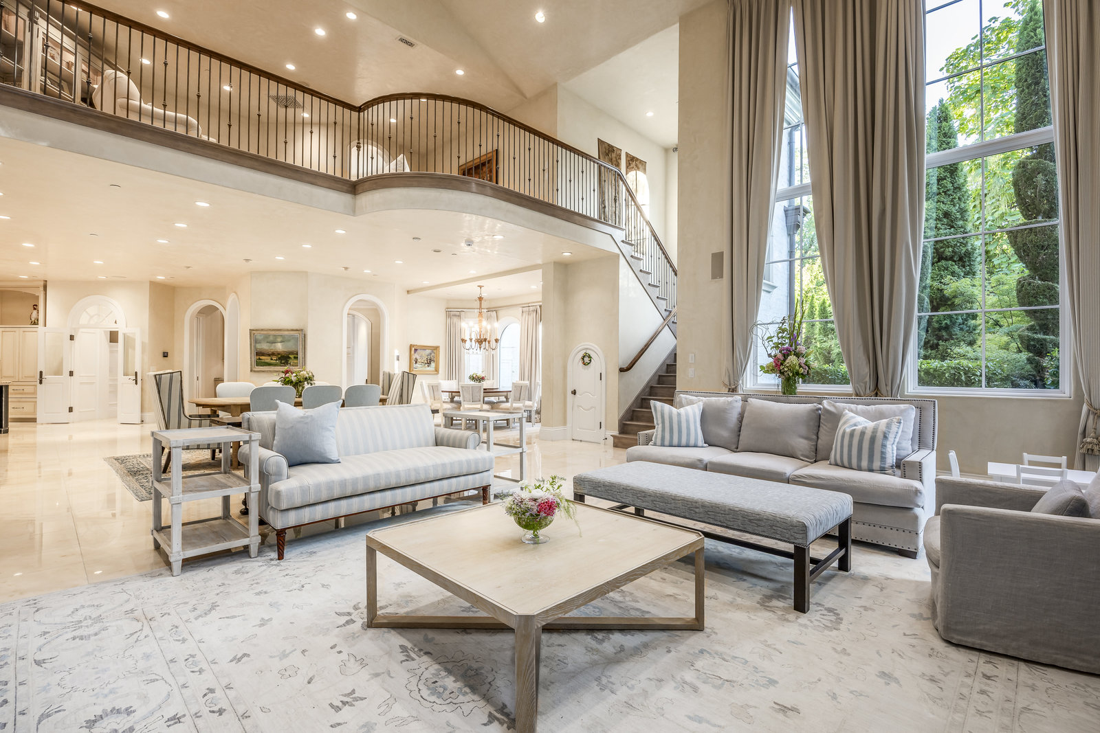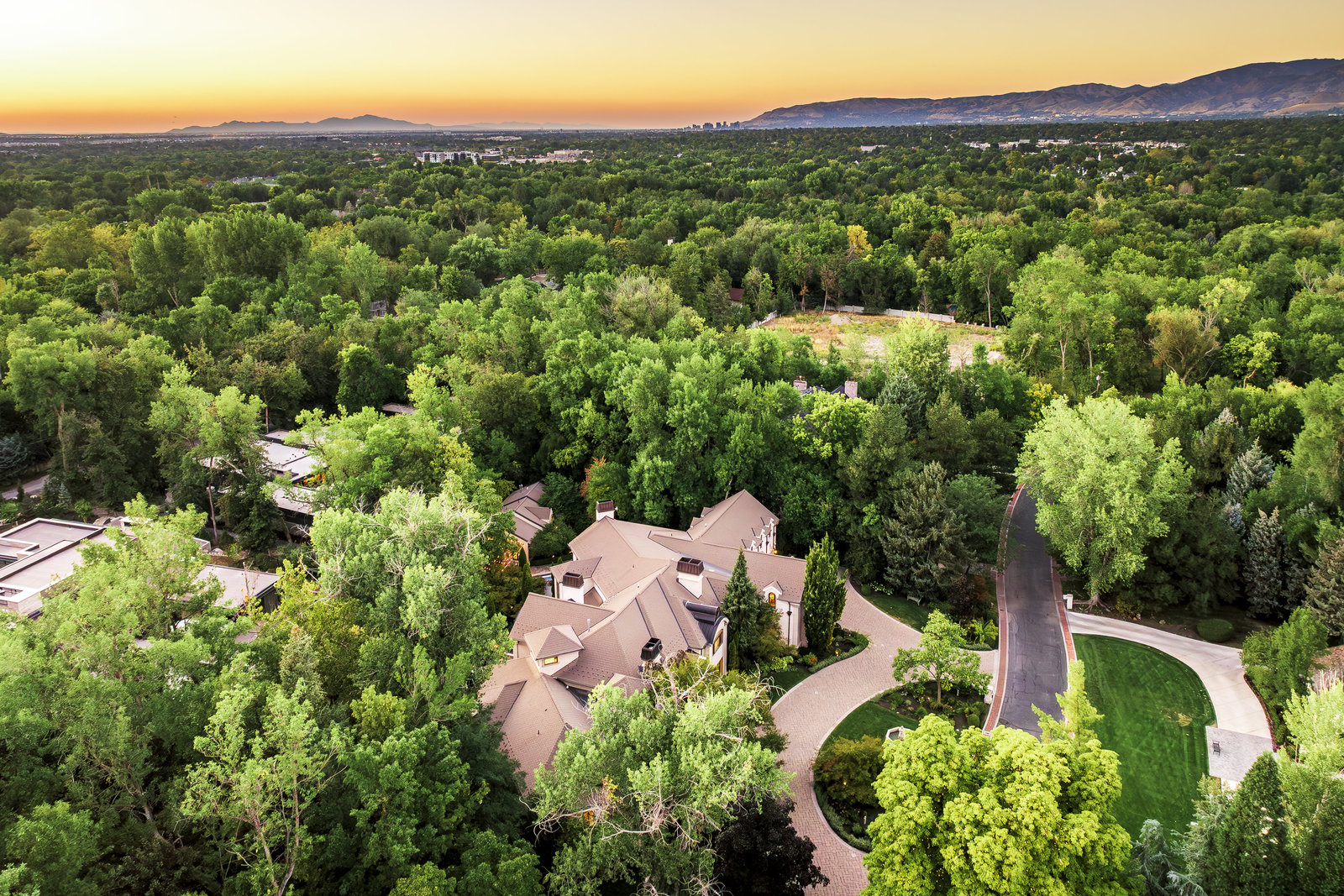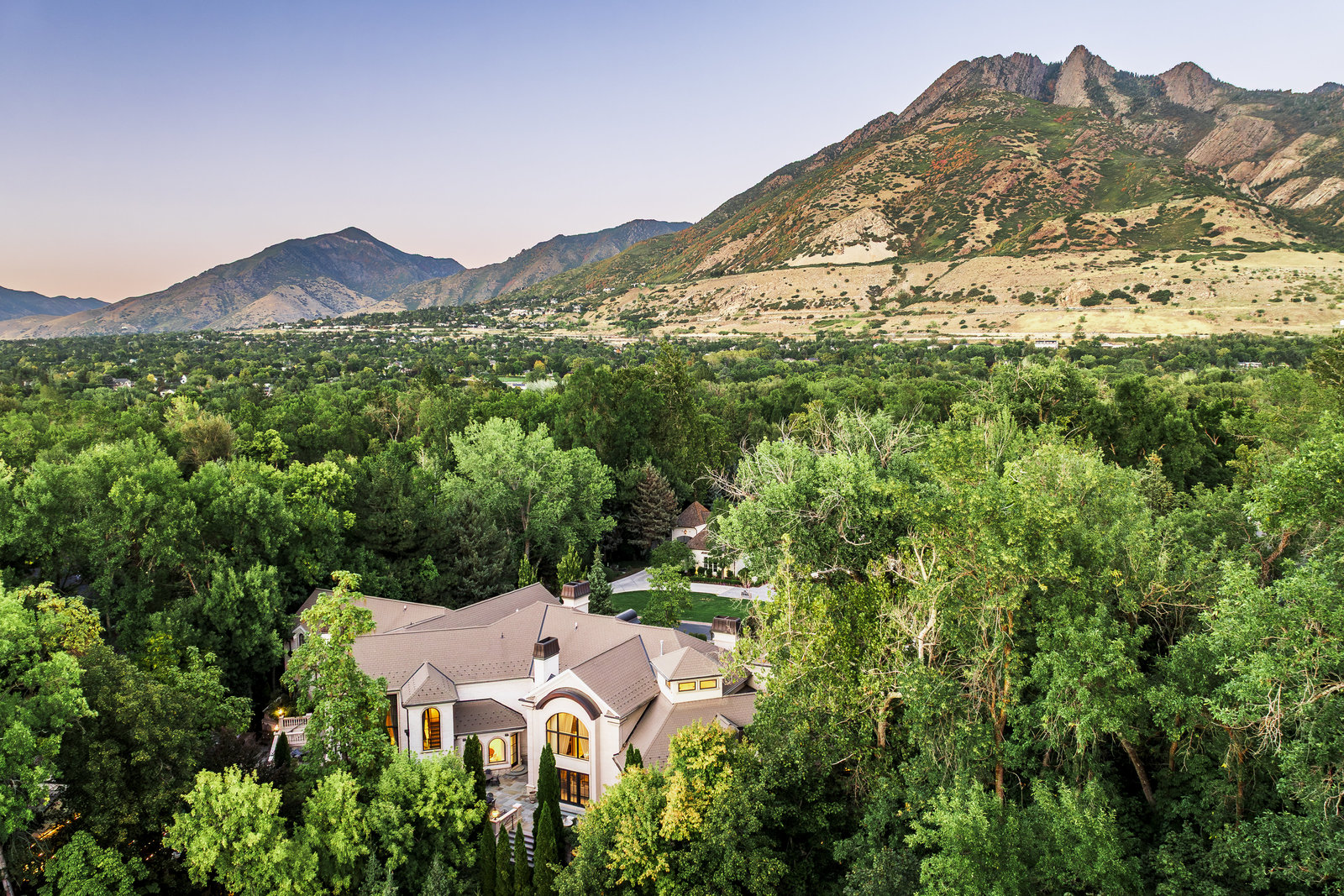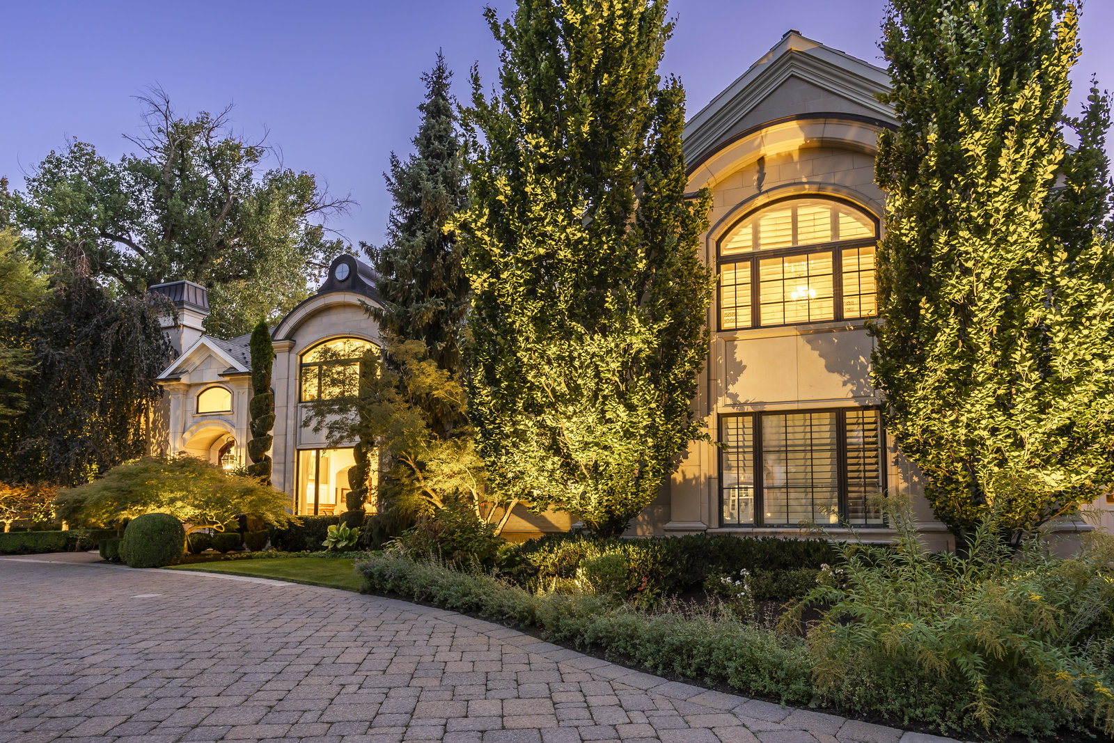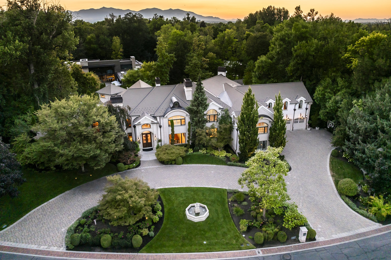 This extraordinary custom estate is nestled within the exclusive gated enclave off Holladay’s famed Walker Lane. Set on spectacular grounds with mature trees, manicured gardens, and a resort-style pool, this residence blends timeless European elegance with thoughtful modern amenities. The grand foyer sets the stage with marble floors and chandeliers imported from France. Throughout the home, exquisite millwork, hand-carved fireplaces, and bespoke light fixtures showcase unrivaled craftsmanship. An executive office features rich wood paneling, a gas fireplace, and a rolling library ladder leading to a lofted gallery, perfect for art, books, or quiet reflection. The formal dining room, anchored by a fireplace and expansive picture windows, seamlessly connects to a butler’s pantry and the chef’s kitchen, which boasts an oversized island, custom cabinetry, dual dishwashers, two sinks, and a full suite of luxury appliances. The kitchen opens to a soaring great room with floor-to-ceiling windows and casual dining spaces, ideal for entertaining or everyday living. The main level offers both formal and informal gathering areas, charming play spaces, generous storage, and a spacious five-car garage. The primary suite is a private retreat, complete with a lounge/office, gas fireplace, expansive his-and-hers closets, and separate spa-inspired bathrooms with soaking tubs, marble showers, and dressing vanities. Upstairs, three large en-suite bedrooms, a loft, a second laundry, a whimsical French-inspired playroom, and a vaulted theater create a welcoming and versatile layout. Outdoors, the estate transforms into a private resort setting with a pool, hot tub, outdoor kitchen, stone patios, and a two-bedroom, two-bath pool house with full kitchen and living room, ideal for extended guests. Across the stream, a storybook pavilion on the edge of the water invites moments of gathering, play, and celebration. Located in one of Utah’s most coveted neighborhoods, this estate offers unmatched privacy while being minutes from downtown, world-class skiing, shopping, dining, and outdoor recreation. Every detail has been meticulously curated, making this one of Utah’s most remarkable offerings.