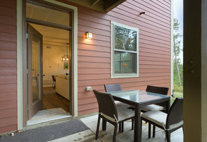 Relax by the cozy living room fireplace or step outside to enjoy serene mountain views. The primary suite offers a private patio and ensuite bath, creating a personal sanctuary for rest and relaxation. Additional amenities include a convenient laundry closet and a community hot tub just steps from your door.