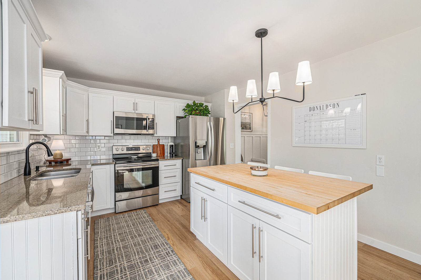 A thoughtfully designed Raised Ranch that is a perfect blend of style and tranquility situated on almost a quarter acre corner lot. Step inside to soft, neutral tones that create a warm and inviting atmosphere throughout. The spacious living room greets you with newer carpet, luxurious window treatments, a cozy gas fireplace, and soaring vaulted ceilings. Throughout the home, you’ll appreciate the many updates, including brand New windows, fresh interior and exterior paint, New carpet, New LVP flooring, upgraded knockdown ceilings, New baseboards, and modern fixtures. Major systems have been refreshed as well with a New water heater and heat pump. The kitchen is a true highlight with luxury vinyl plank flooring, a butcher block island, crisp white cabinetry, stainless steel appliances, granite countertops, and a stylish subway tile backsplash. The Newly remodeled primary suite is designed for comfort and style, featuring LVP flooring, a coffered ceiling, two closets, and a fully updated bath with a New vanity, fixtures, mirror, and a custom-designed board and batten wall. The secondary main floor bath has also been completely remodeled with LVP flooring, a New vanity and fixtures, and a skylight that fills the space with natural light. On the lower level, you’ll find a cozy family room finished in soft neutrals with a combination of New carpet and New LVP flooring. A beautiful built-in hall tree adds function, and the Newly remodeled half bath brings a modern ...